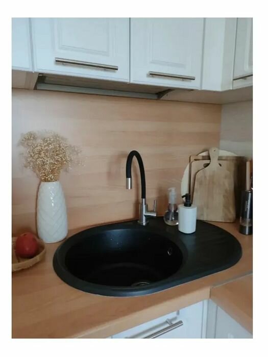 | Отзыв: | Купила с бонусами за 1000 р. До этого был Frud чёрный краска облезла за 6 мес. В данном смесителе покрашенных деталей нет, соответственно надеюсь сохранит внешний вид надолго. Несмотря на высокий излив абсолютно не брызгает вокруг в отличие от предыдущего. В интерьер кухни с чёрной мойкой и техникой из нержавейки вписался идеально. Гибкий излив облегчает уборку раковины. Пользуемся пару месяцев -полёт нормальный) Устанавливали сами трудностей не возникло. |