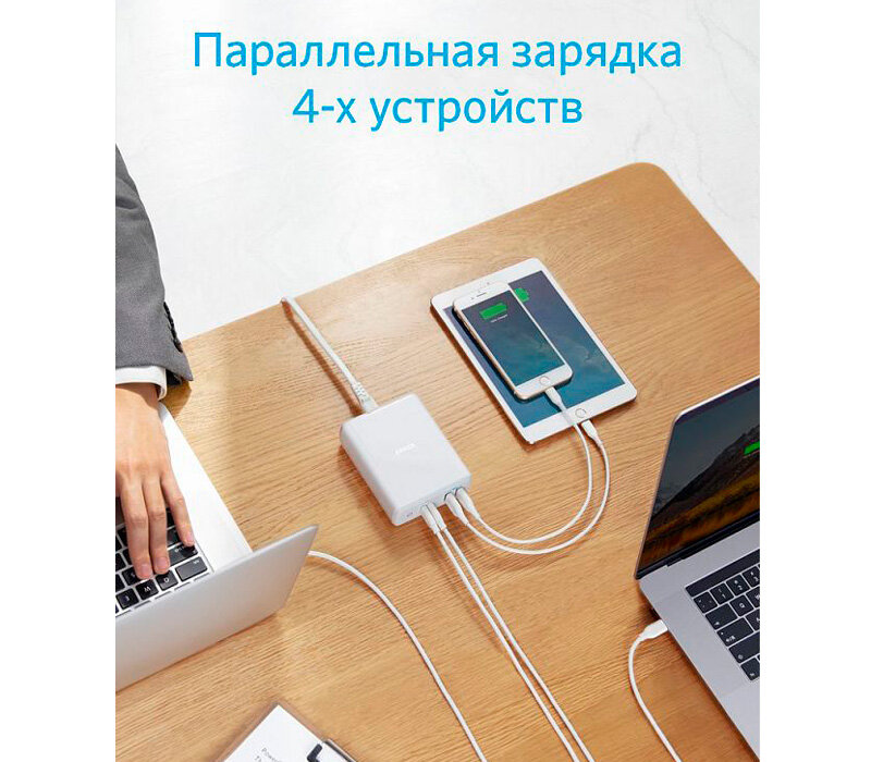 Anker PowerPort PD+ 4 1xUSB-C 3xUSB-A 100W EU White A2041G21 автомобильные и сетевые .
