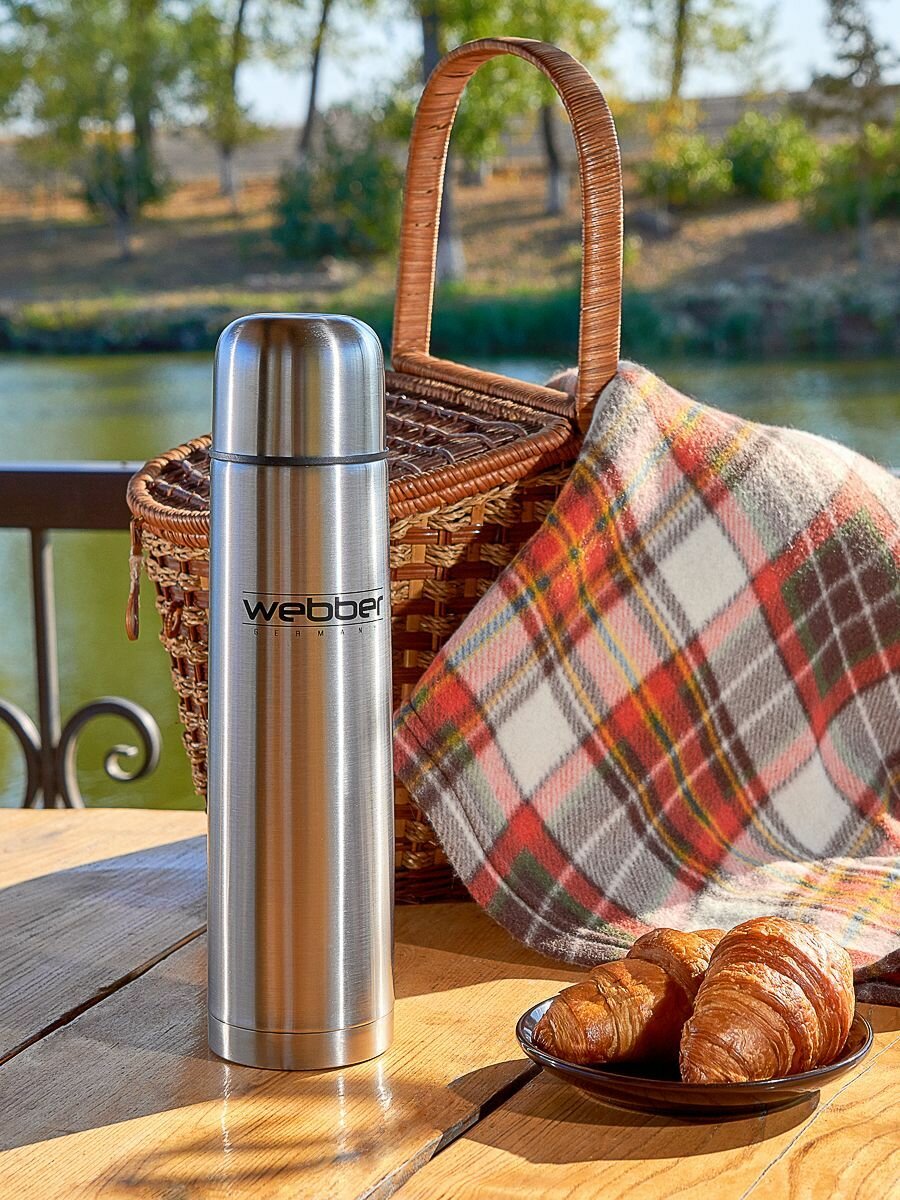Термос Weber, SS-750P, 750 мл, нержавеющая сталь, пробка с кнопкой для наливания, стальной