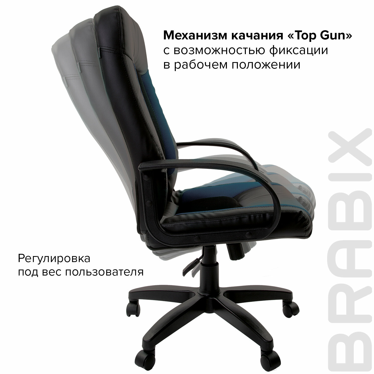 Кресло офисное BRABIX «Strike EX-525», экокожа черная, ткань черная/синяя, TW