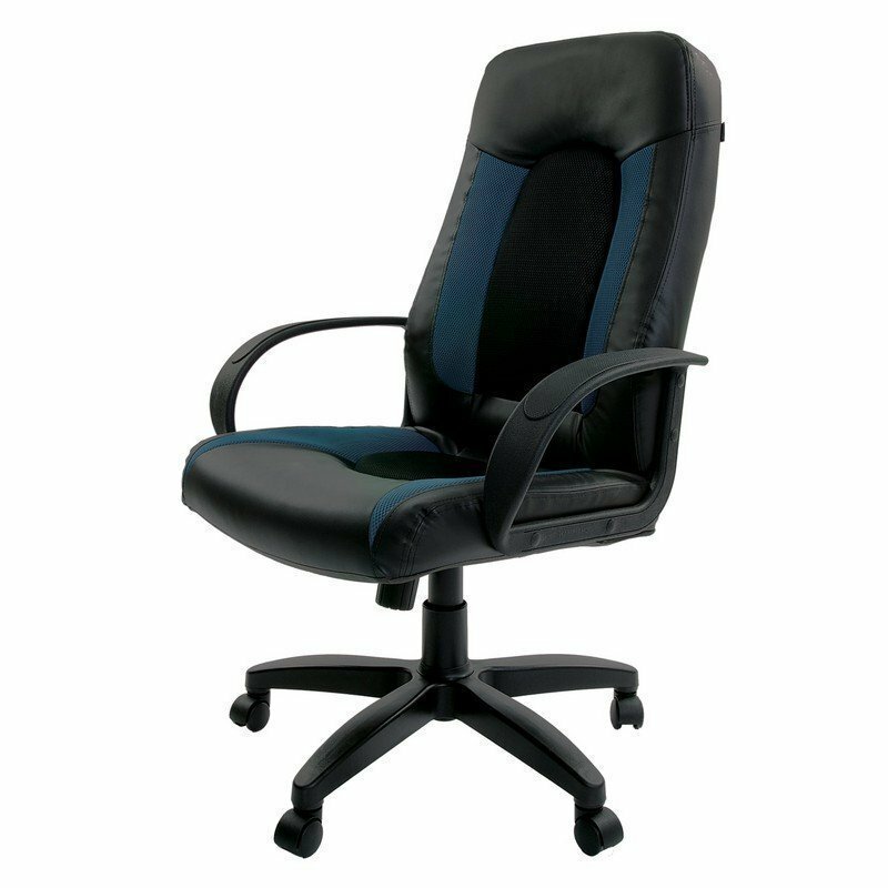 Кресло офисное Brabix Strike EX-525 экокожа/ткань, черно-синее TW 531380
