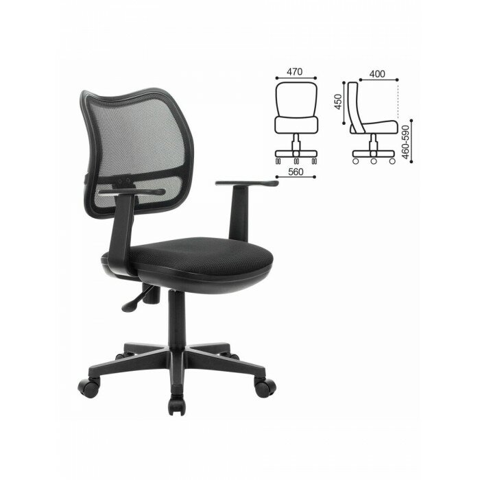 Кресло офисное BRABIX "Drive MG-350", с подлокотниками, сетка, черное, 532082