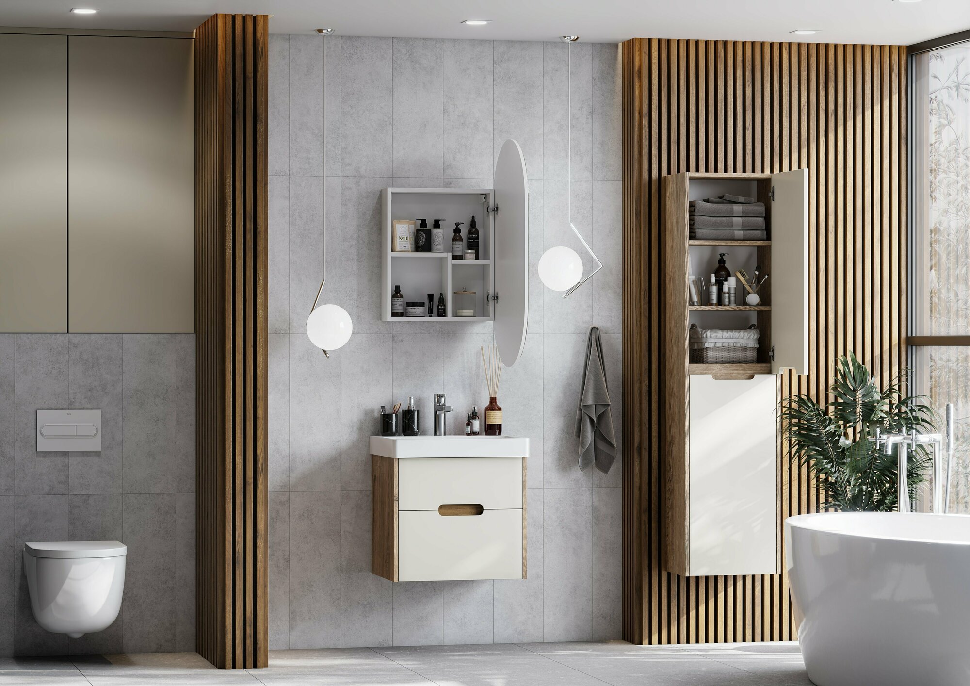 Тумба под раковину AQUATON Оливия 90 подвесная Бежевый/Дуб веллингтон (1A254401OLVG0)