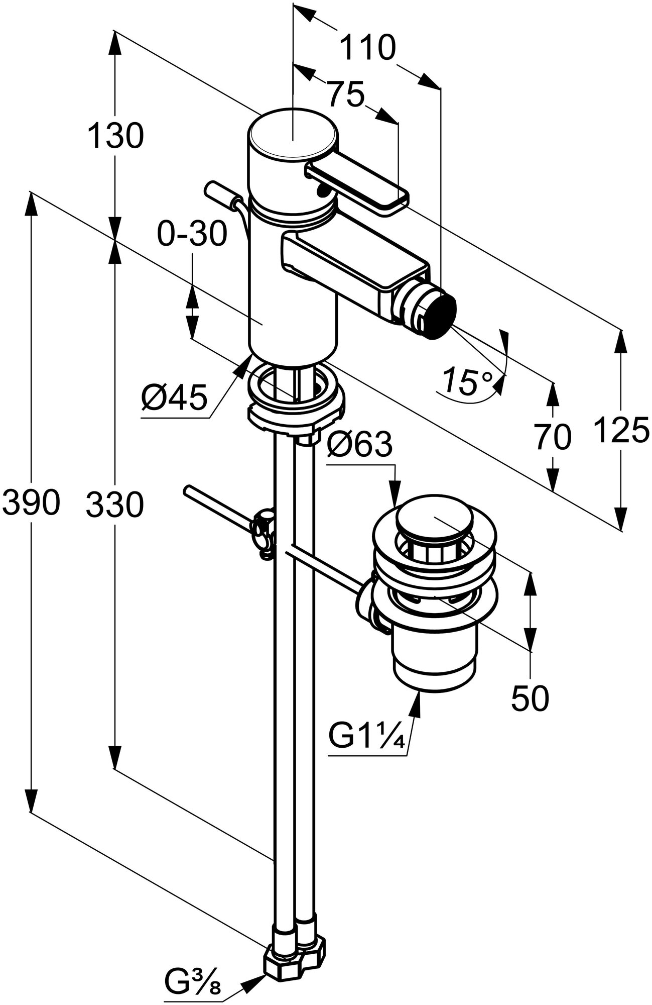 Смеситель Kludi Zenta 385300575 для биде c донным клапаном
