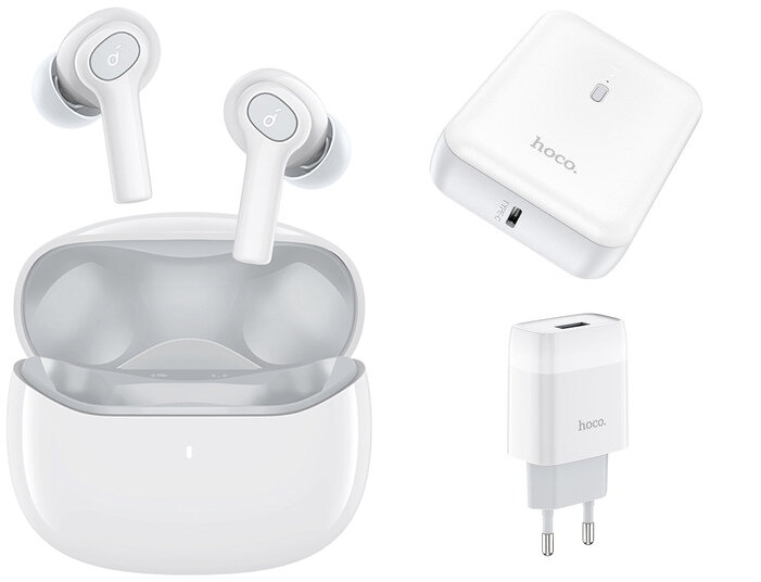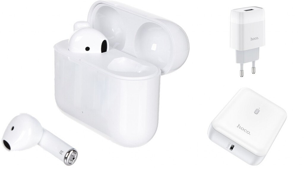 Универсальный Доп. Аккумулятор 10000mAh, J87, HOCO, выход 1 USB (18W), 1 PD (20W), вход Micro/Type-C, белый