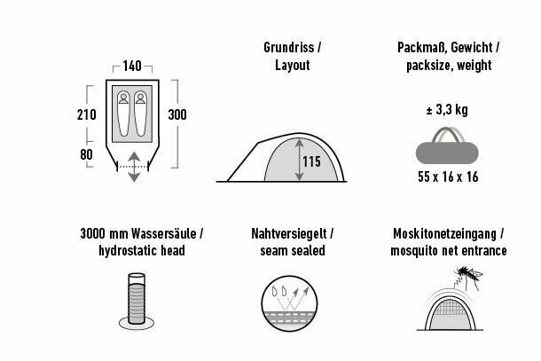 | Водостойкость тента/дна | 3000 / 3000 мм в.ст. |