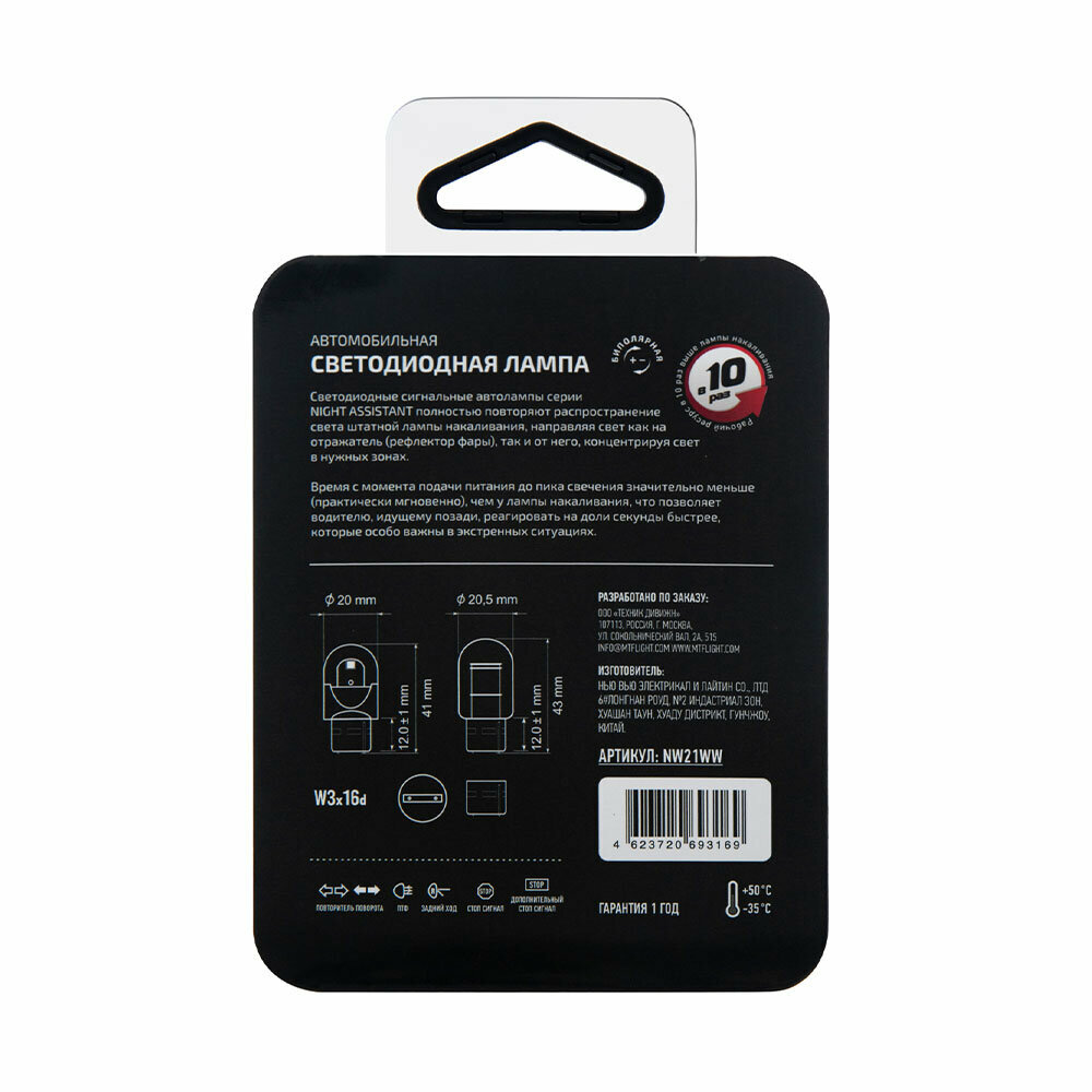MTF FILTER NWY21W Светодиодная автоампа MTF Light серия Night Assistant 12В, 2.5Вт, WY21W, янтарный, бистер, . NWY21W