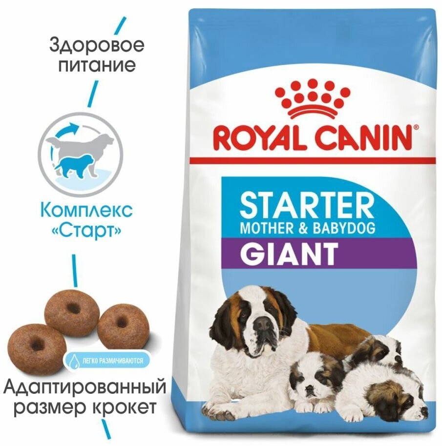 Купить Royal Canin Giant Starter Корм для щенков очень крупных размеров до 2-х месяцев, беременных и кормящих сук, 15 кг