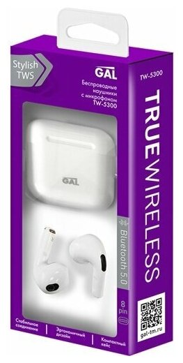 Bluetooth наушники вкладыши с микрофоном GAL TW-5300, TWS, V5, беспроводная мобильная гарнитура, белые