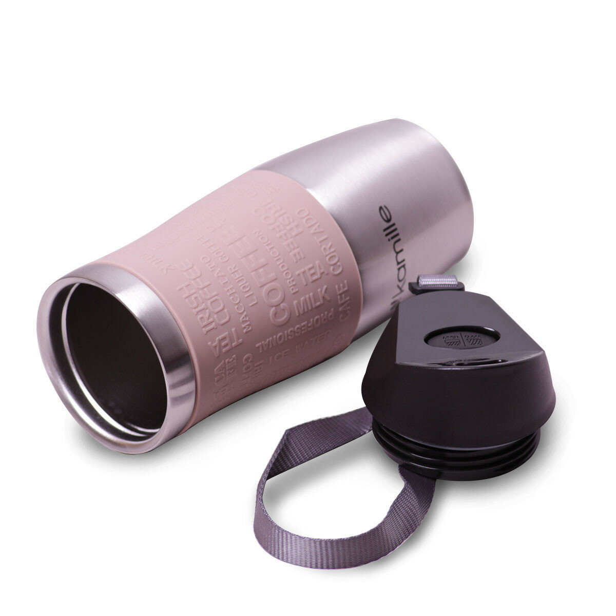 Термокружка 380 мл. из нержавеющей стали Kamille KM-2052 с TPR-вставкой и ремешком (24 / бежевый)