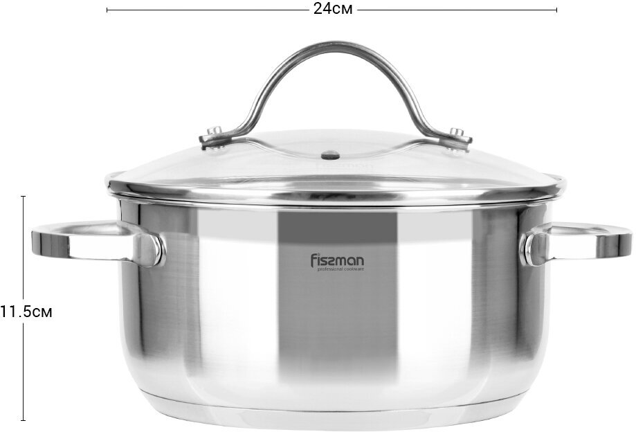 15816 FISSMAN Набор посуды GABRIELA 8 пр.(нерж. сталь) Ковш 14х7,5см - 1,1л, Кастрюля 16х7,5см - 1,5л, Кастрюля 20х9,5см - 3л, Кастрюля 24х11,5см - 5,2л; Крышки стекло; Индукция; Термоаккумулирующее многослойное дно.