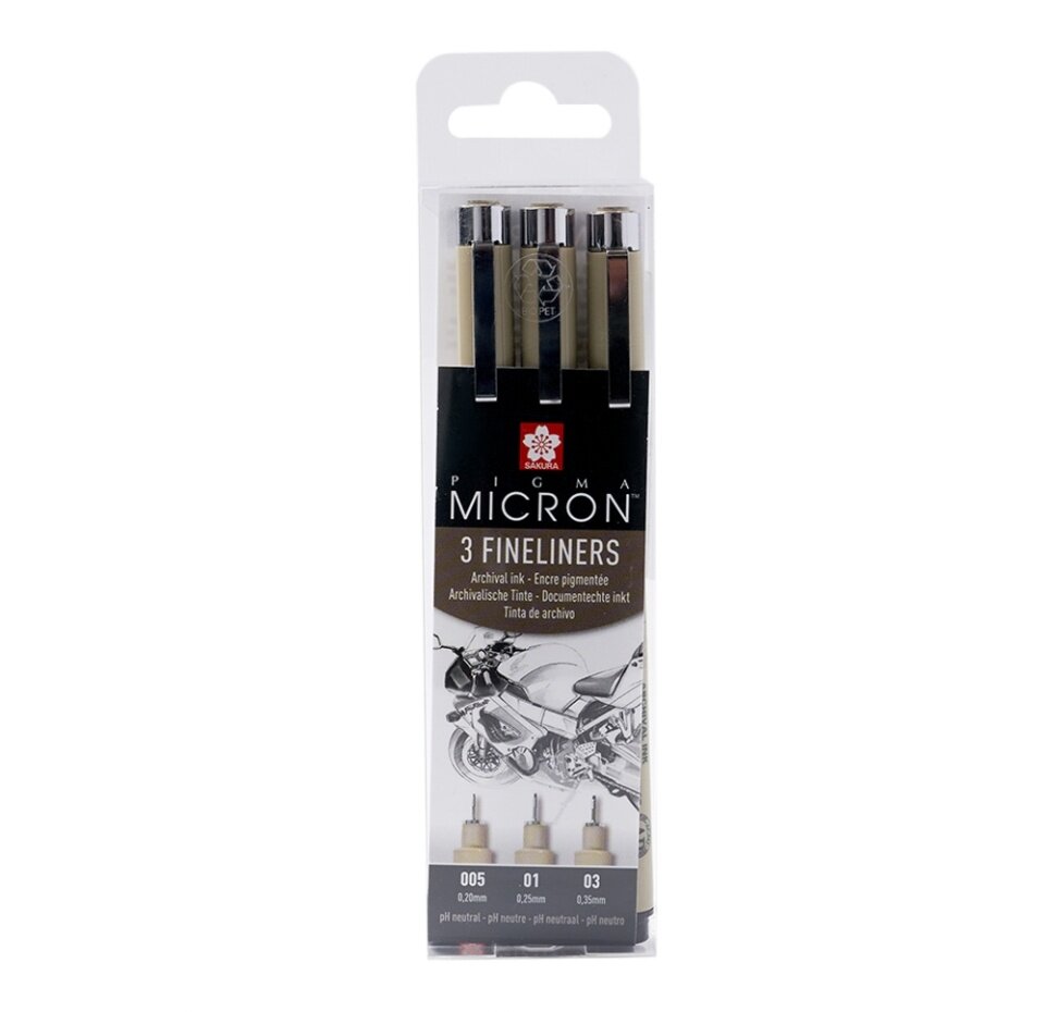 Набор линеров Pigma Micron, капиллярные ручки 3 шт. (0,2 мм., 0,25 мм., 0,35 мм.), цвет чернил: черный