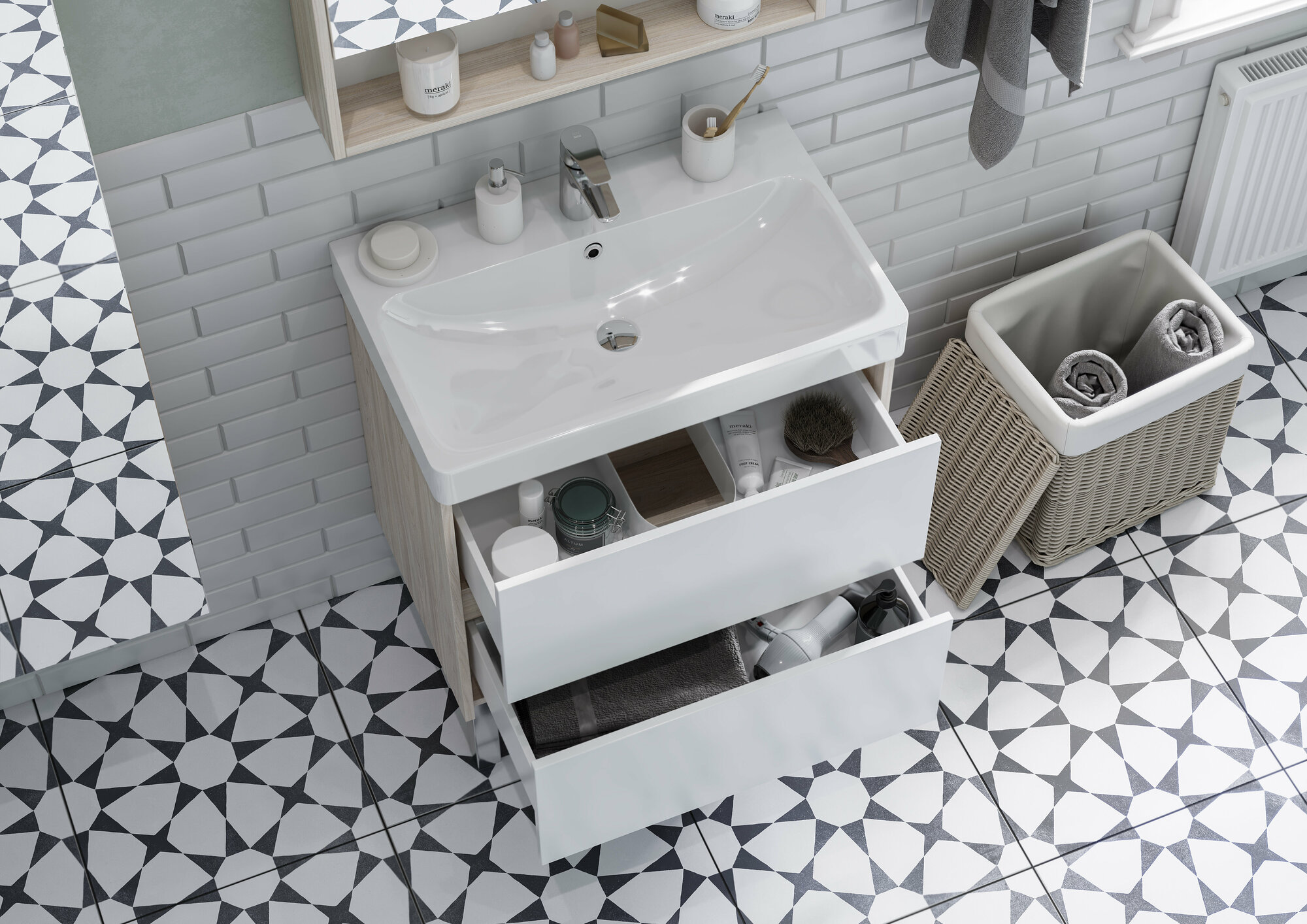 Тумба под раковину Акватон Сканди 70 белая/дуб верона (1A251801SDB20)