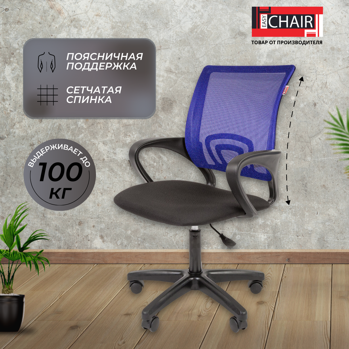 Кресло компьютерное Easy Chair 304 LT, офисный стул на колесиках, сетка/ткань, черный/синий