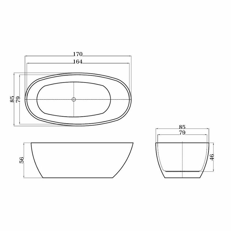 Esbano Акриловая ванна Esbano Sophia 170x85 см, отдельностоящая, овальная, со сливом-переливом