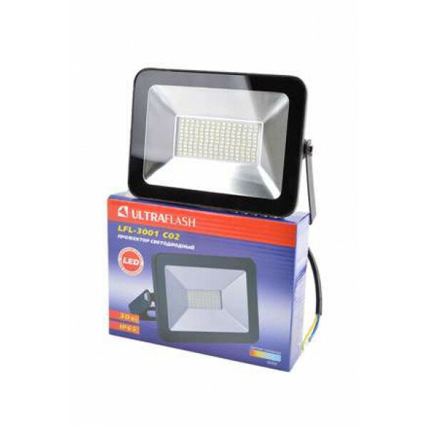 Прожектор светодиодный Ultraflash LFL-3001 C02 черный (LED SMD прожектор, 30 Вт, 230В, 6500К)