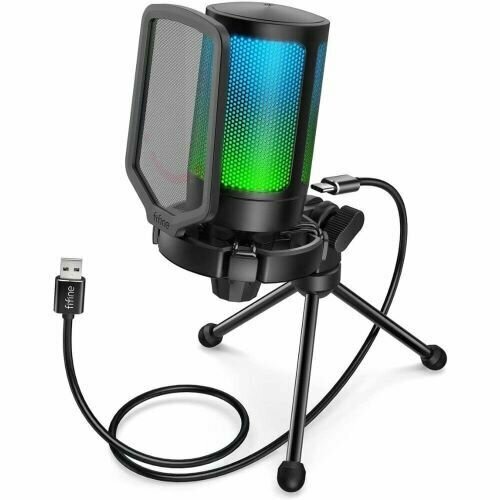 Конденсаторный USB Микрофон Fifine A6V Ampligame с RGB-подсветкой (компьютерный, игровой, для стримов, для конференций, Black)