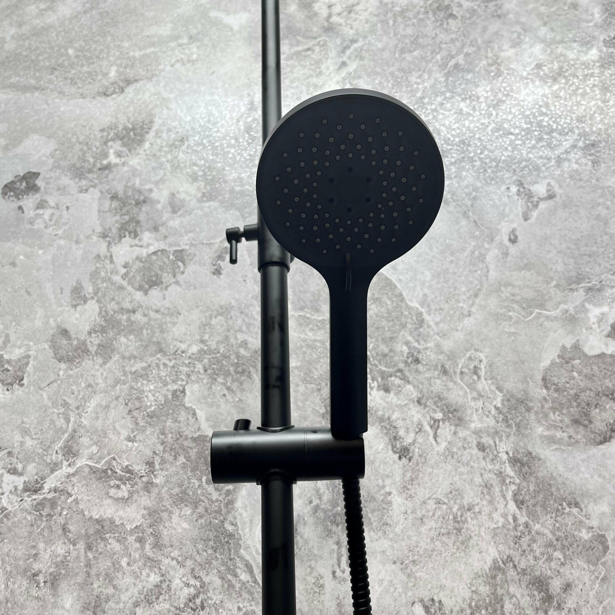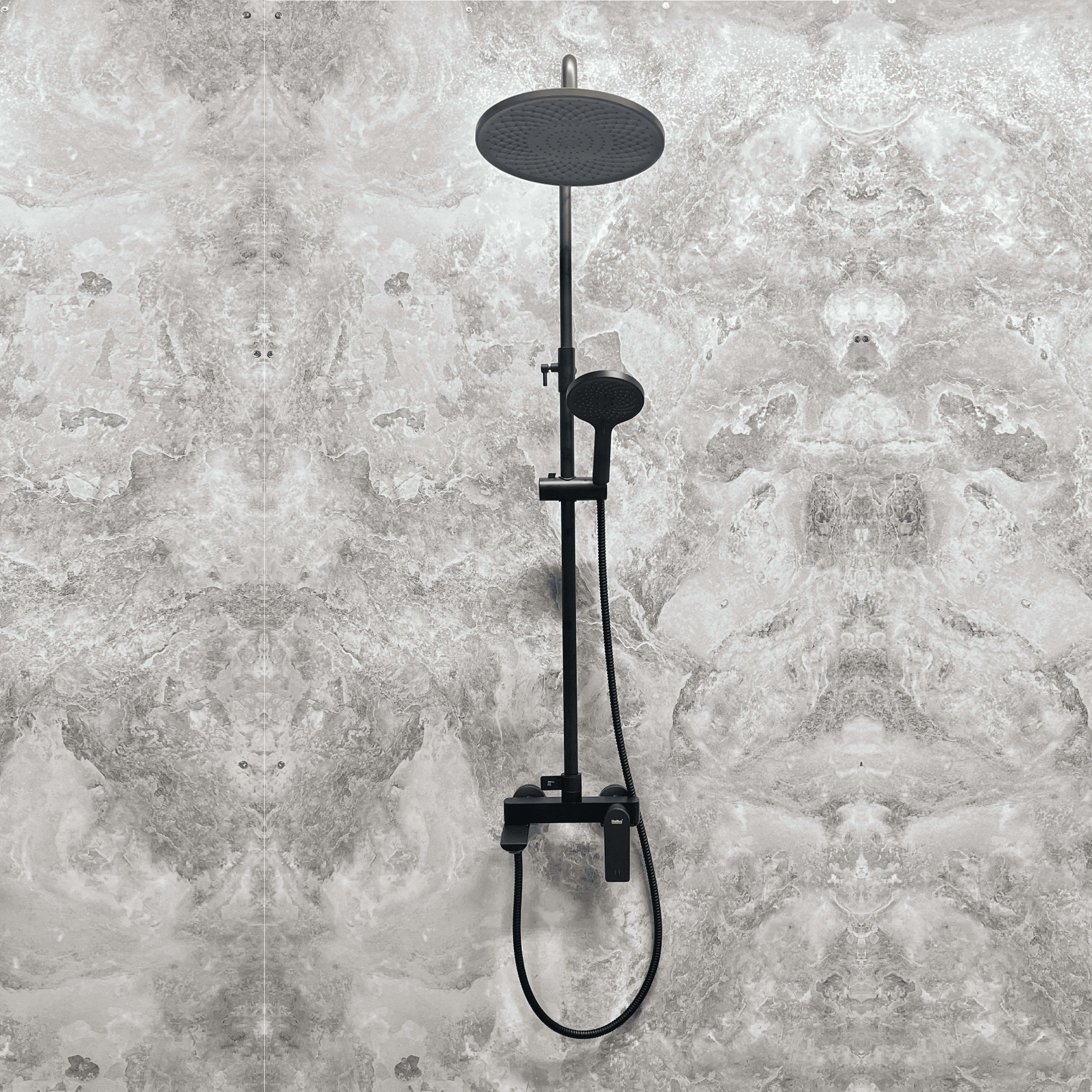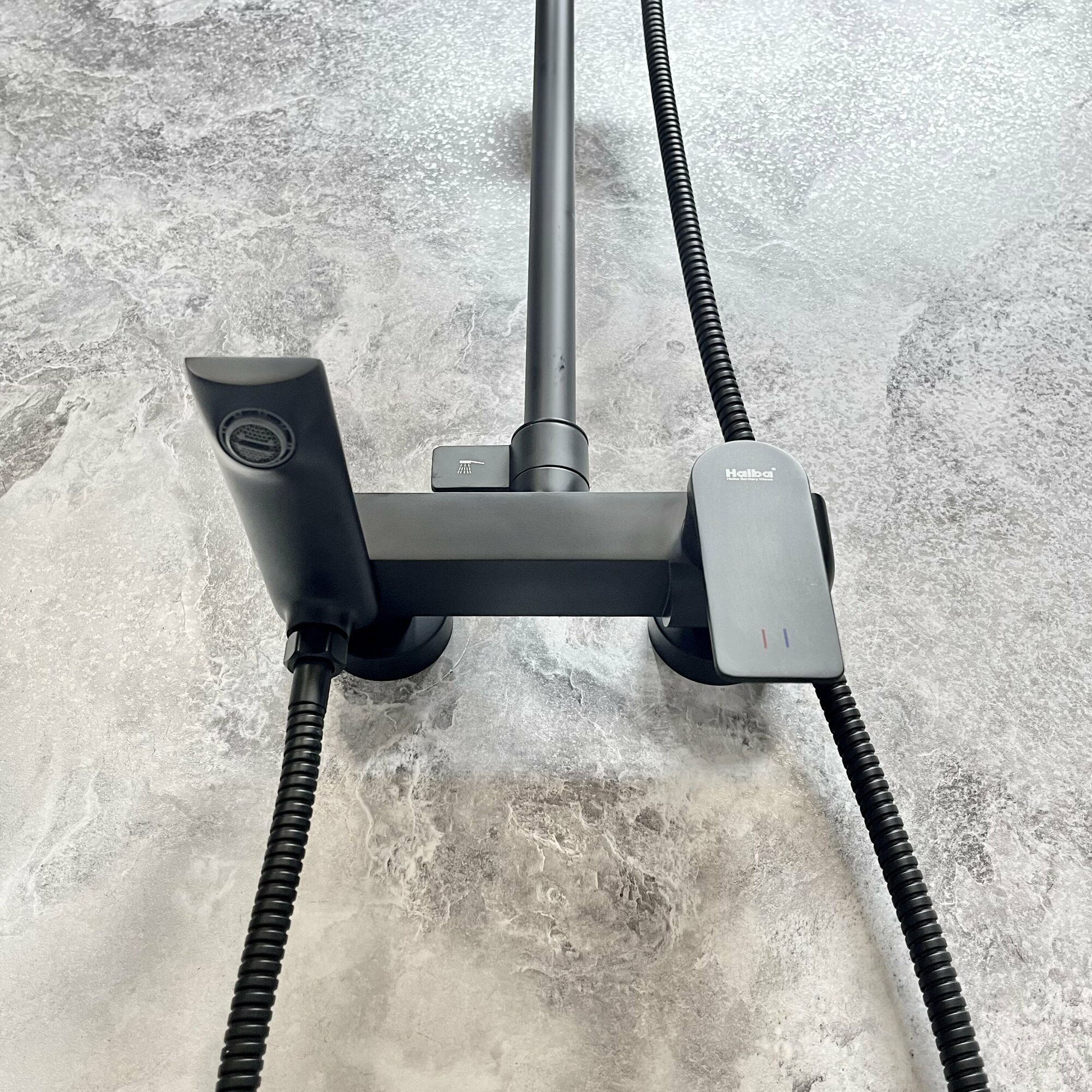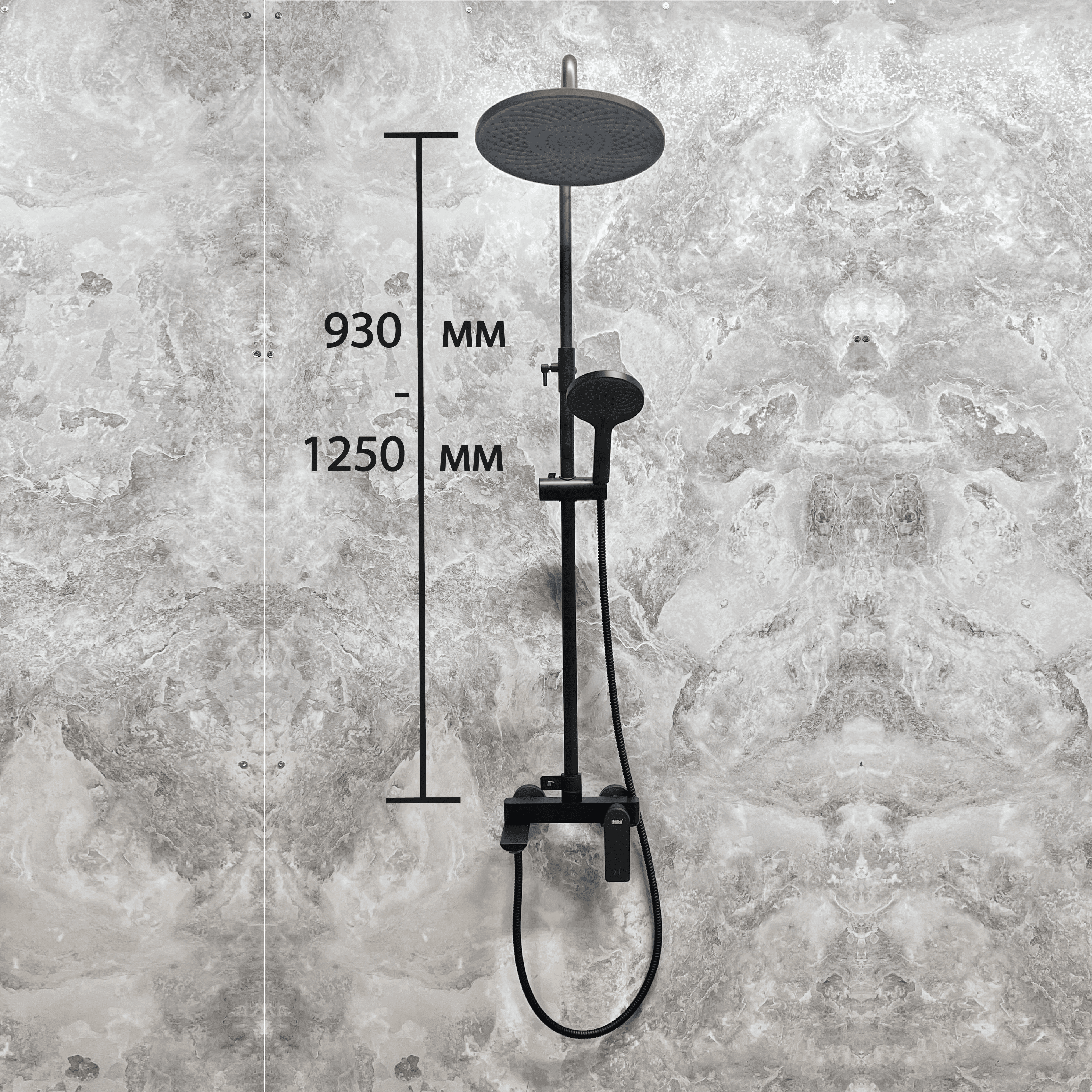 Душевая система, душевой гарнитур с верхним душем, смесителем, монолитным изливом и ручной лейкой, черный/матовый HB24816-7