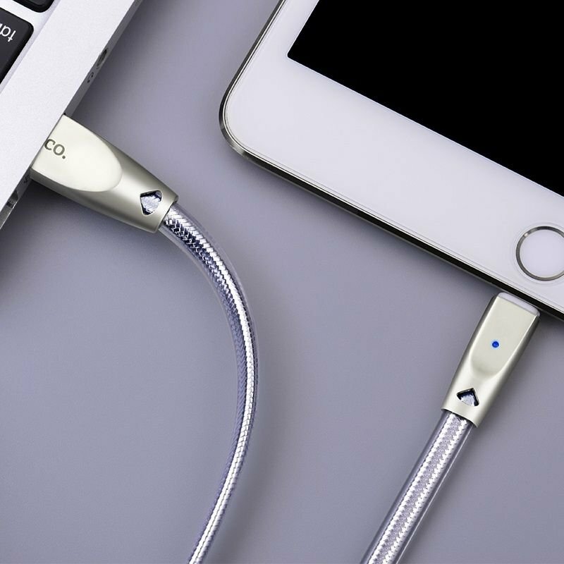 Дата-кабель Hoco U9 USB-Lightning, 1.2 м, серебро