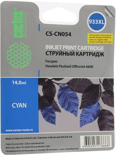 Расходный материал для печати Cactus CS-CN054 933 CYAN (Картридж)