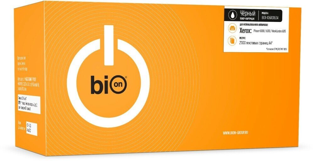 Bion Cartridge Bion 106R01634 Картридж для Xerox Phaser 6000 6010, WorkCentre 6015 2000 стр. , Черный