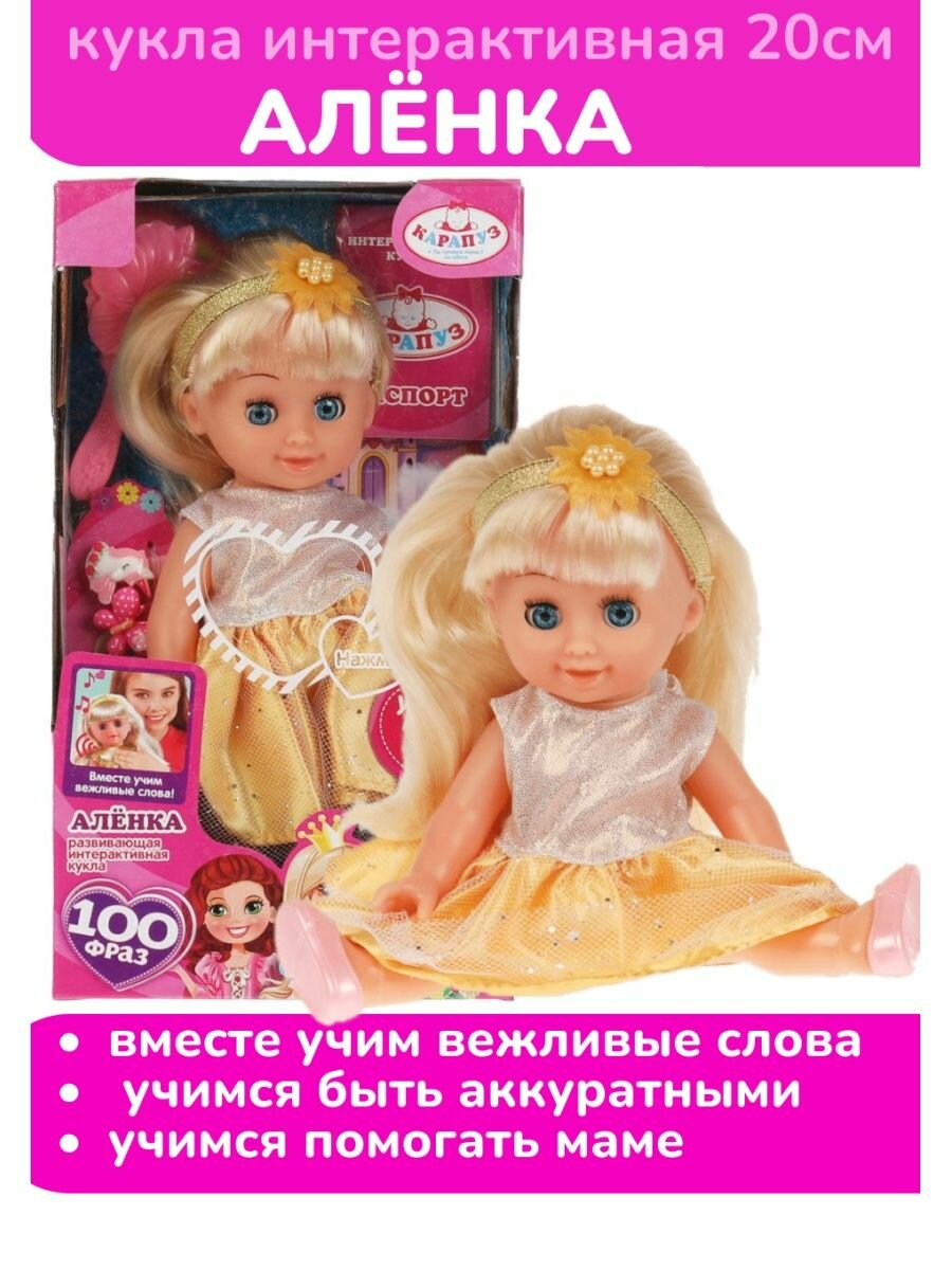 Кукла озвученная Абвгдйка Аленка 20 см. в платье, 100 фраз Карапуз Y20D-POLI17-PRINCESS-22-RU