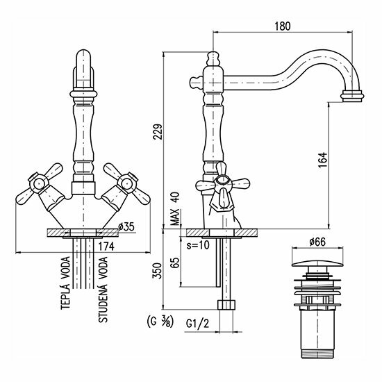 MK121.5/8SM MORAVA RETRO - смеситель для умывальника, CLICK-CLACK, цвет бронза RAV Slezak