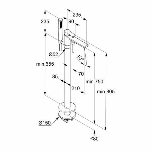Смеситель напольный для ванны Kludi Zenta SL 485900565