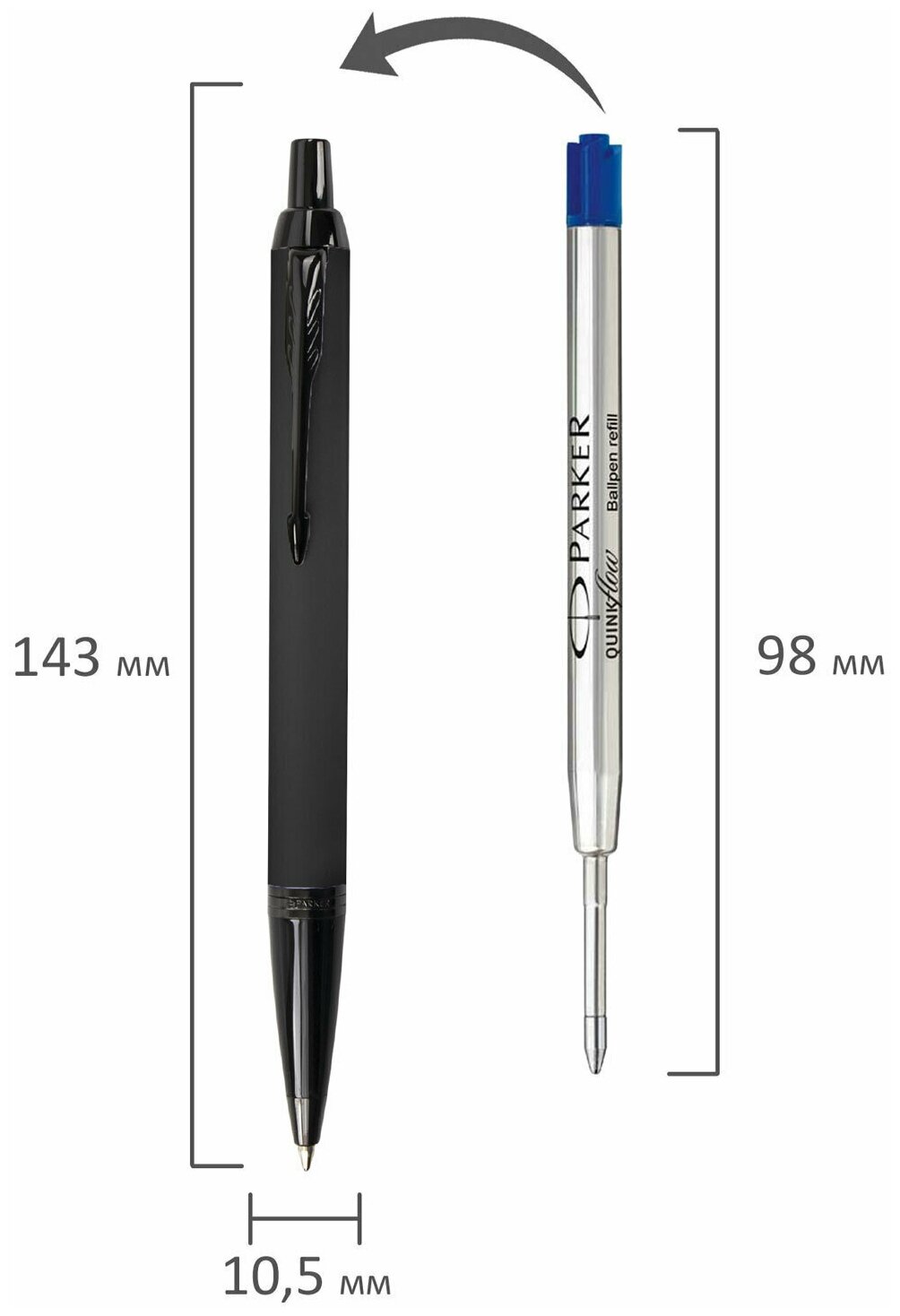 Ручка шариковая Parker IM Achromatic K317 (CW2127618) Matt Black M синие чернила подарочная коробка сменный стержень 1 стержень круглая 1 цвет 1 ручка/Подарочный футляр