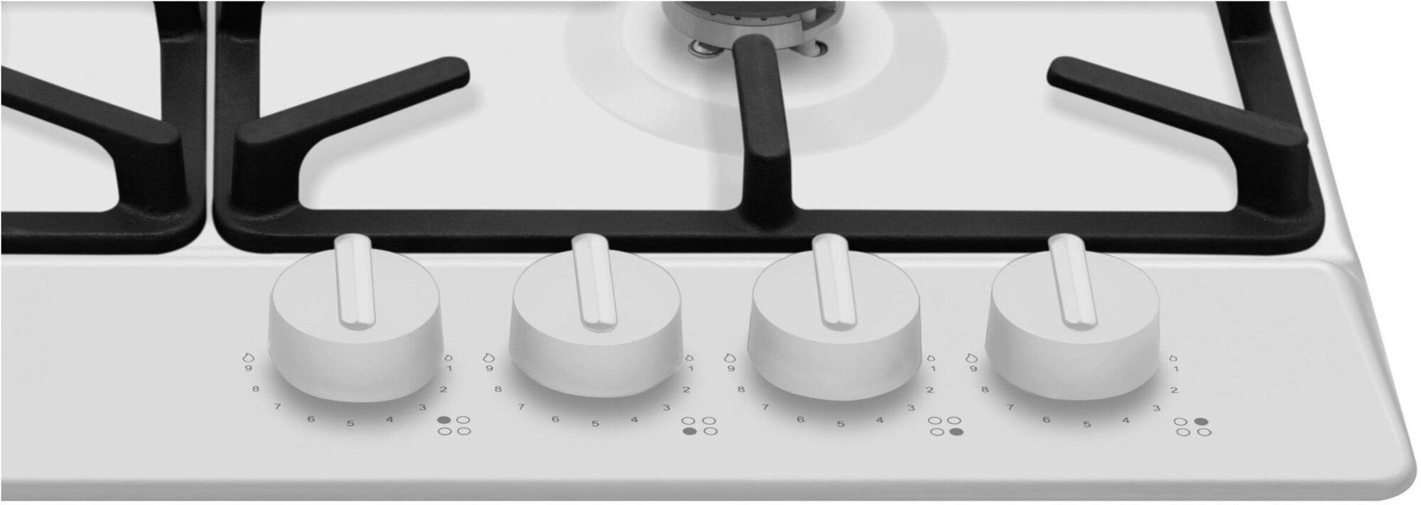Газовая варочная панель Hansa BHGW651550, встраиваемая, 60 см, газ-контроль и автоподжиг, конфорка повышенной мощности, чугунные решетки, белая