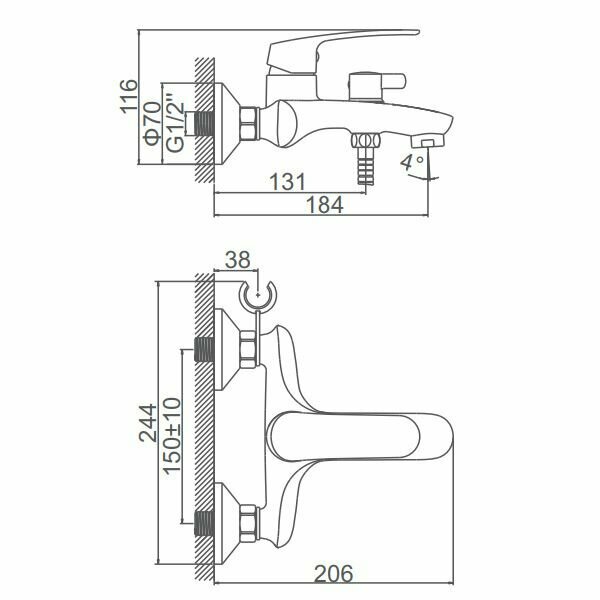 Смеситель для ванны короткий излив дивертор в корпусе Accoona A63117