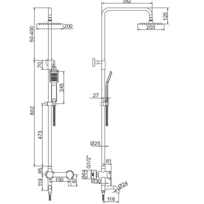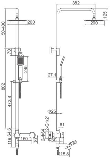 Душевая система Accoona A8301, с тропическим душем, нерж.сталь, цвет сатин Accoona 4776415