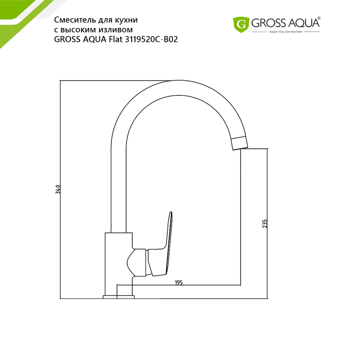Смеситель GROSS AQUA Flat для кухни с высоким изливом 3119520C-В02 (10)