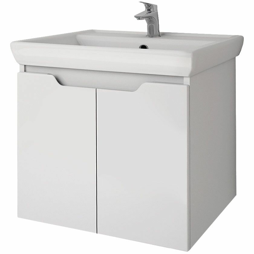 Тумба с раковиной Dreja Q Plus (D) 55 с дверками белый глянец