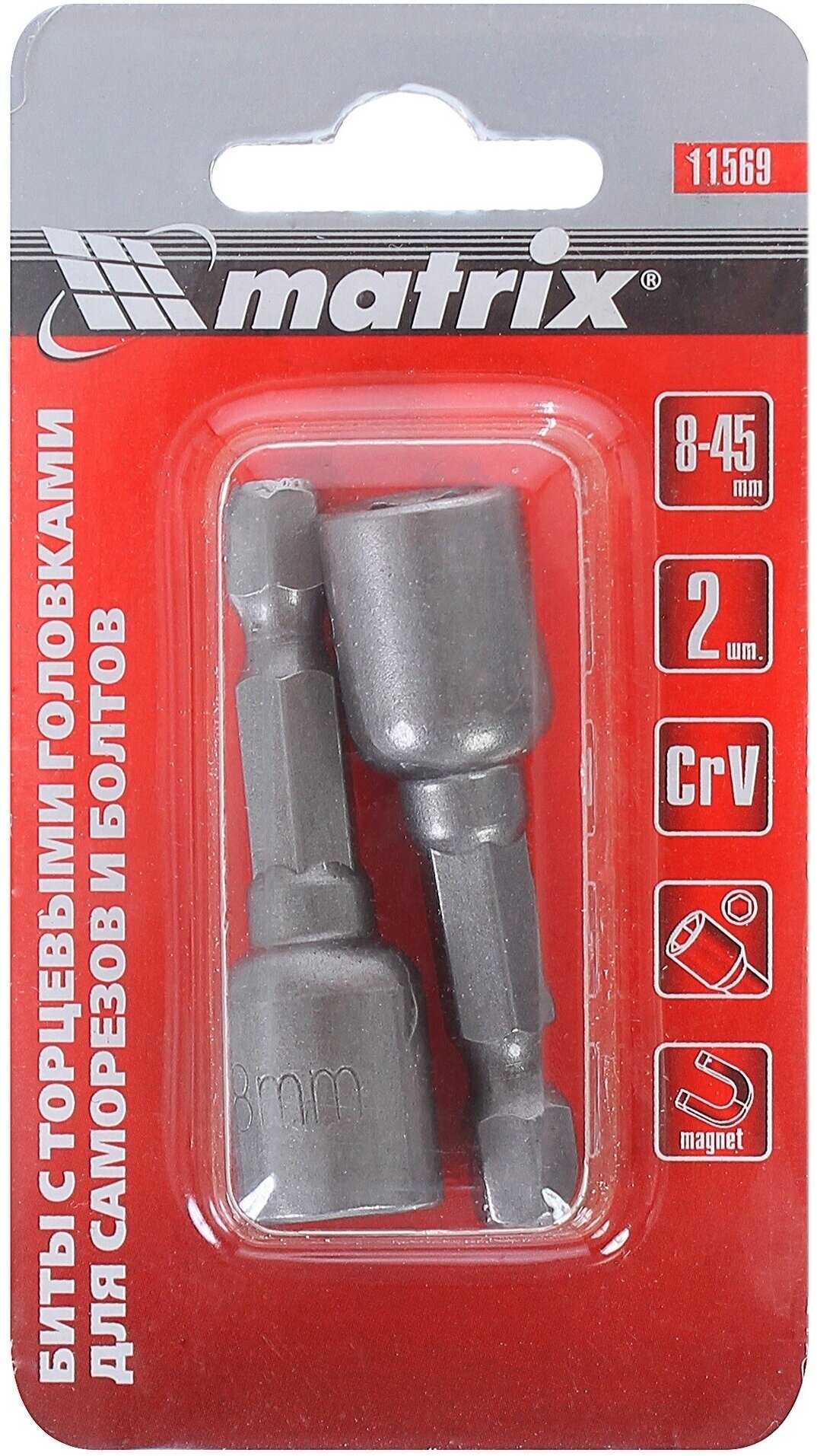 Биты с торцевыми головками Matrix, 8 мм, 2 шт.