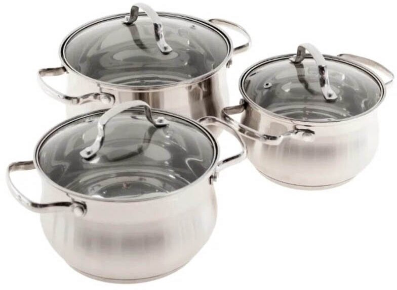 | Комплектация | кастрюли: 2.1 л, 3 л, 4 л; 3 крышки |