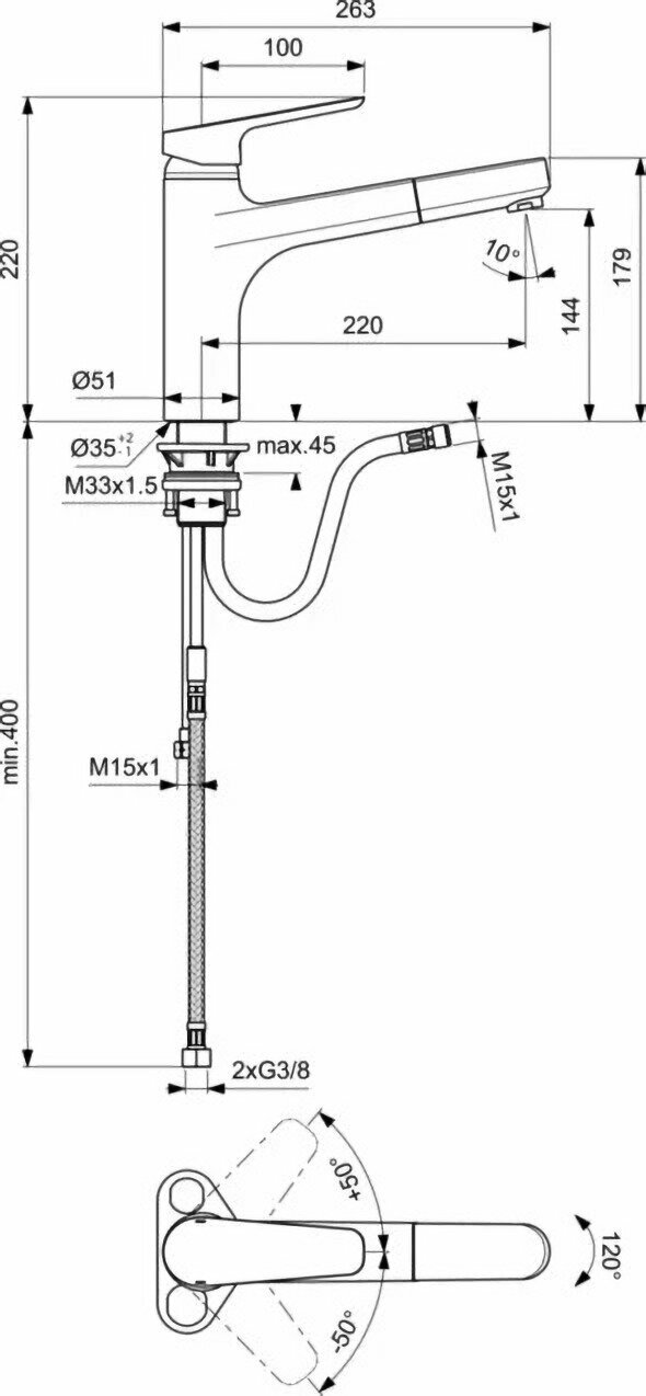 | Длина излива | 220 мм |