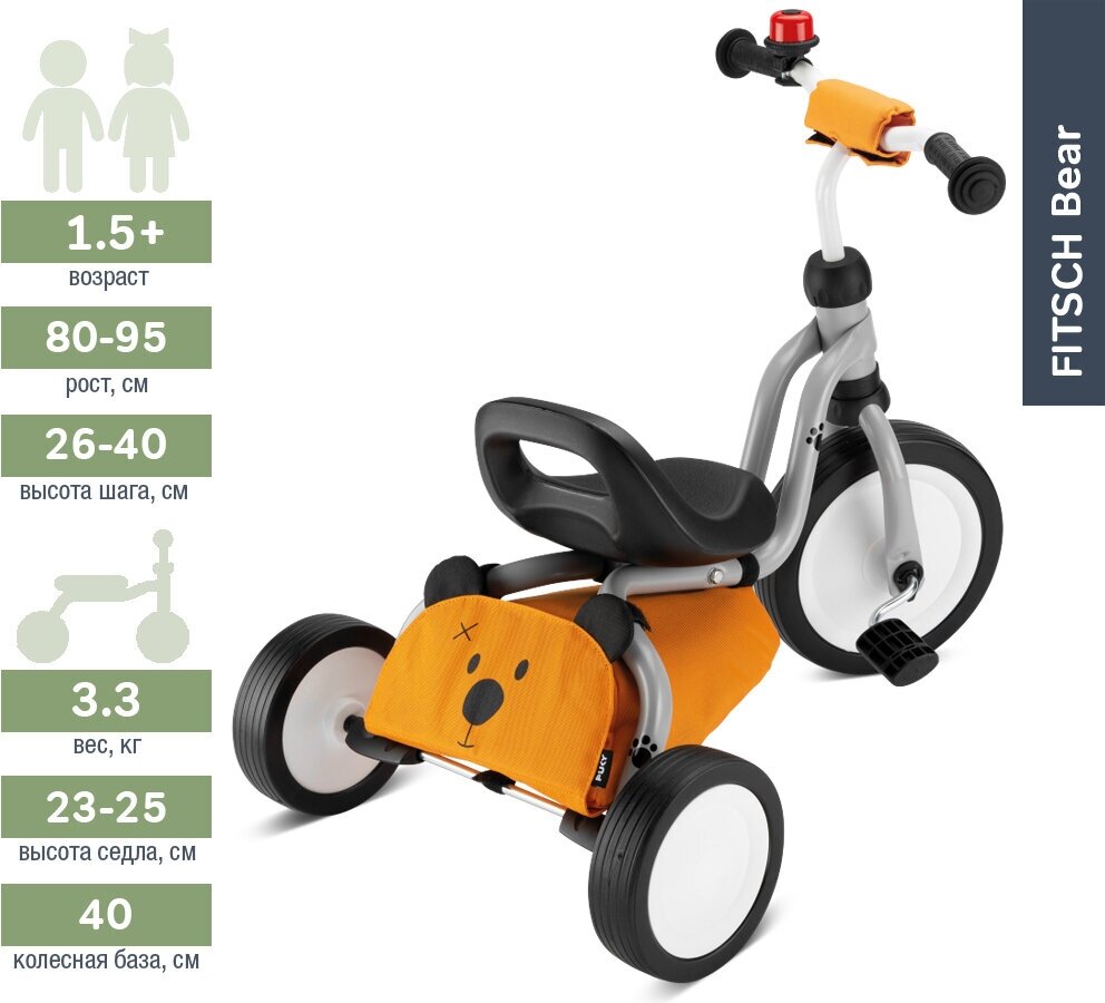 Трехколесный велосипед Puky Fitsch Bear 2112, оранжевый/серый интересное: