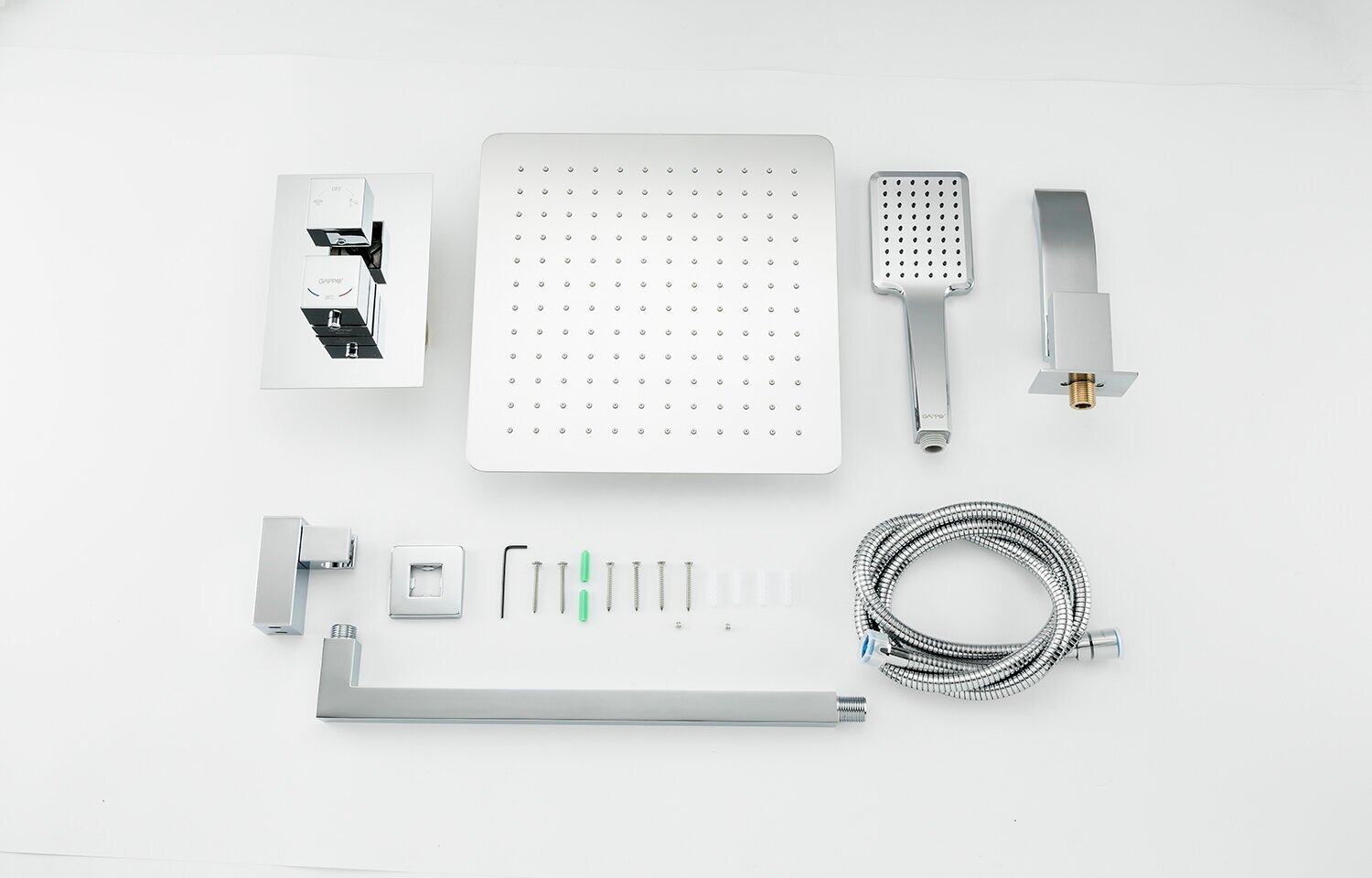 | Комплектация | ручной душ (душевая лейка) / верхний душ (тропический) / Смеситель / стойка / штанга / душевой шланг / крепление ручного душа |