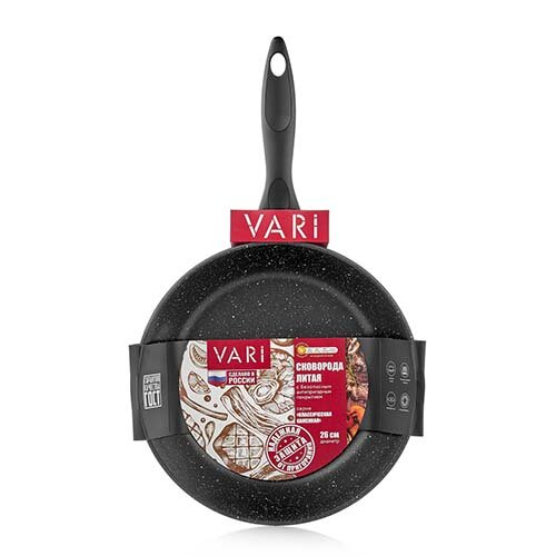 Сковорода VARI "Классическая каменная" литая, черная, 26 см, с антипригарным покрытием