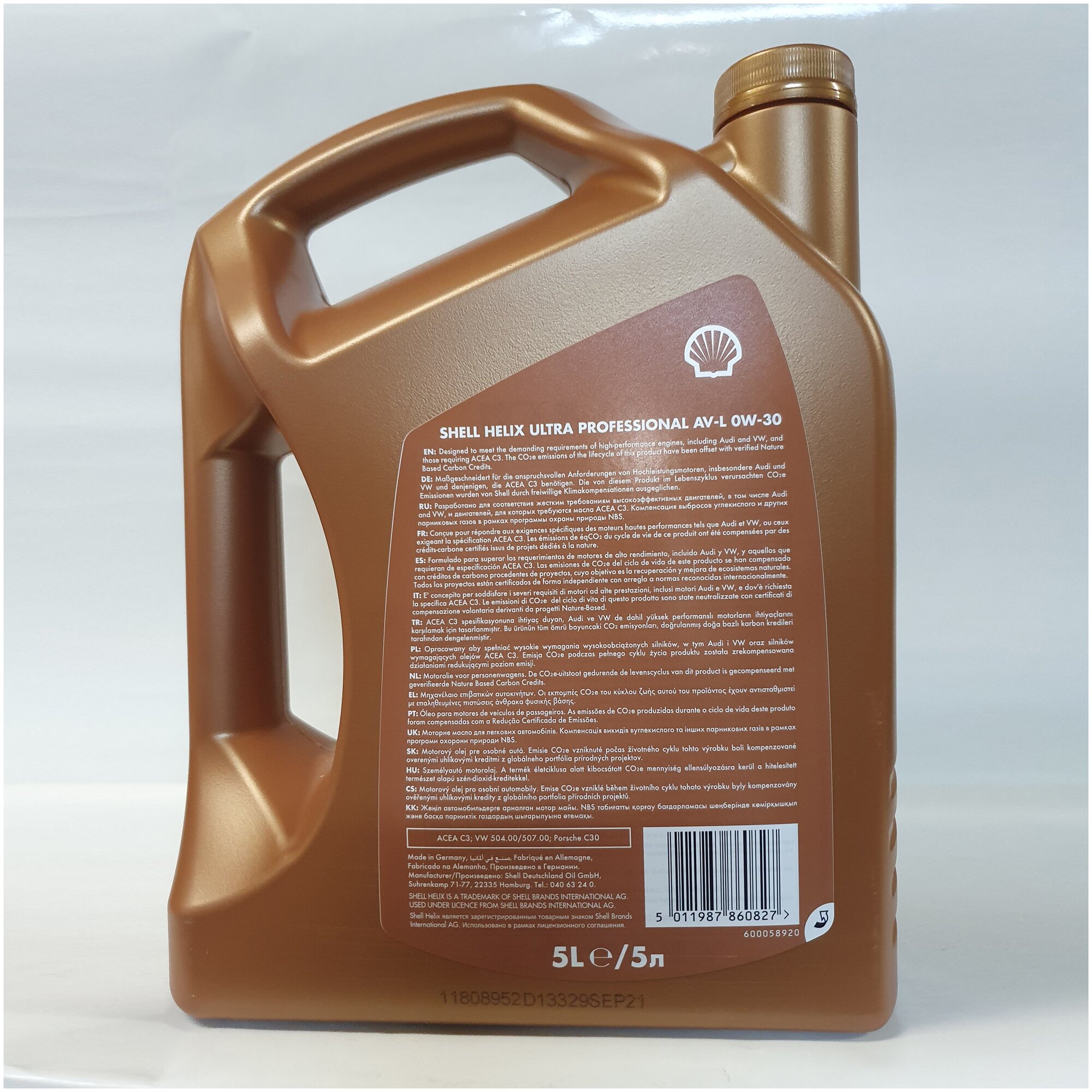 Масло Моторное Синтетическое 5Л - Acea C3, Vw 504.00/507.00, Porsche C30 Shell арт. SHELL 0W30 HELIX ULTRA PROFESSIONAL AV-L/5