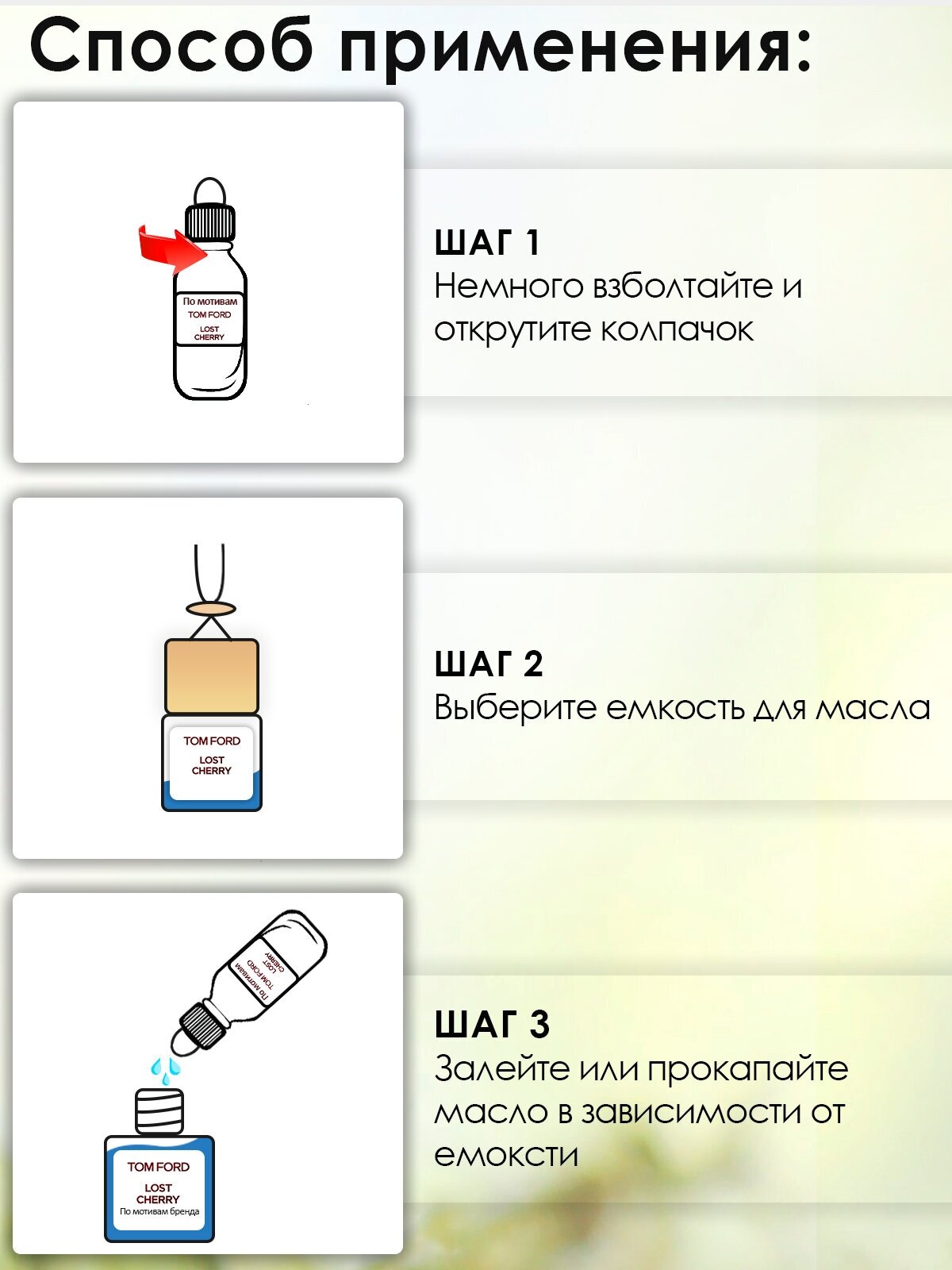 Заправка ароматизатора для автомобиля, парфюмерное масло, дозаправка Аром Д'Боч, 10 мл, Том Форд Черрии