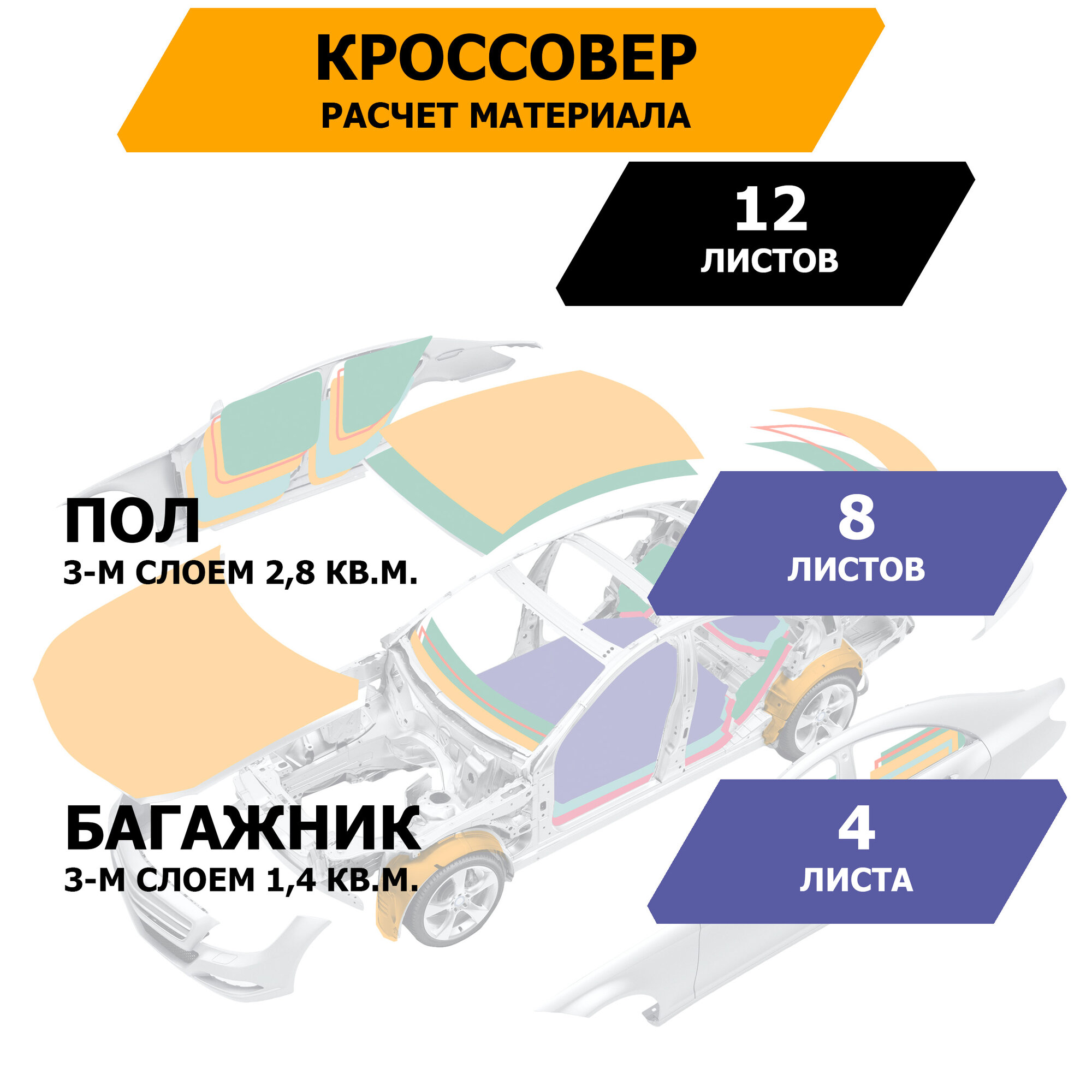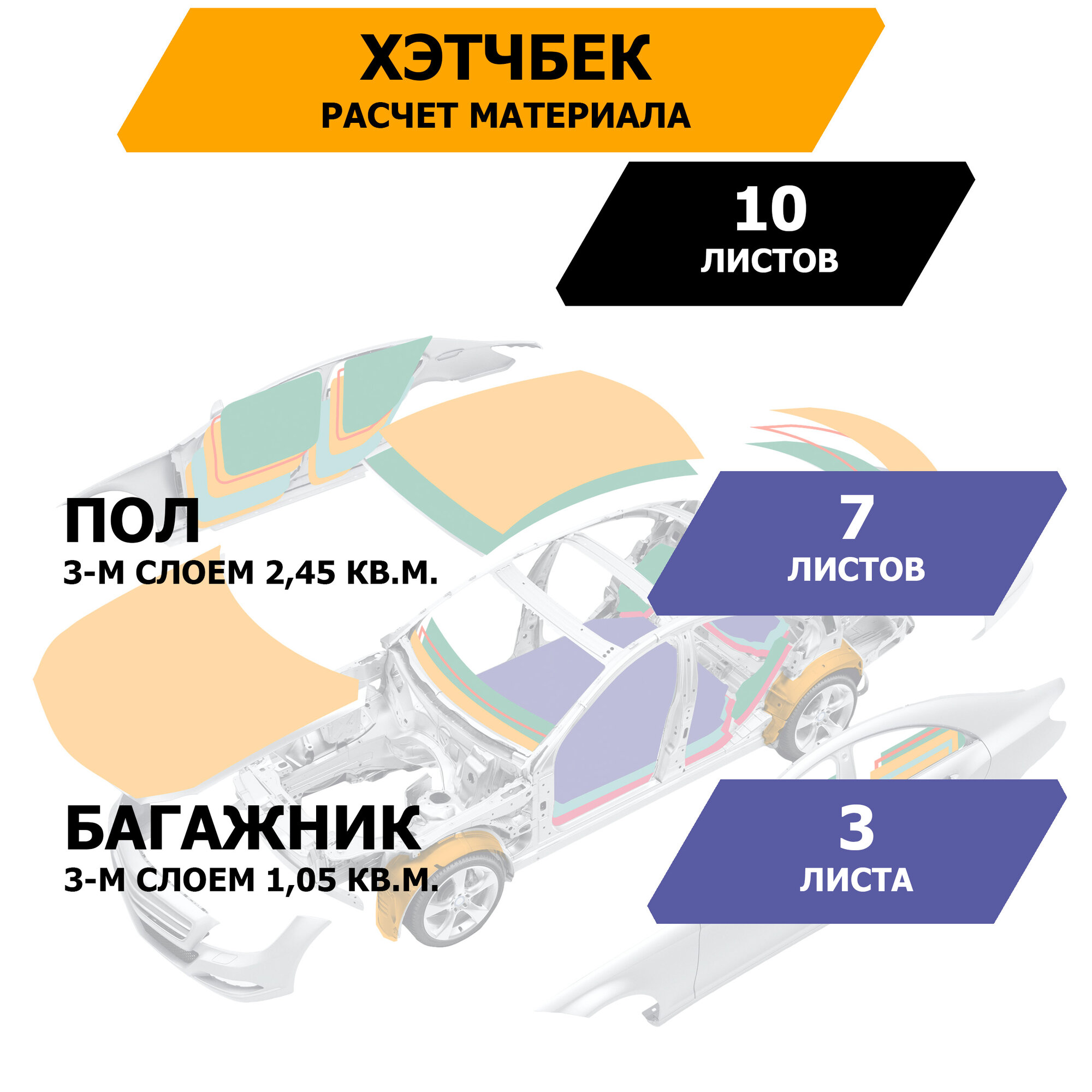 Шумофф Reflex 2 - 36 листов 37.5 см х 23 см Виброизоляция для автомобиля - для потолка, дверей, капота, багажника - толщина 2.0 мм