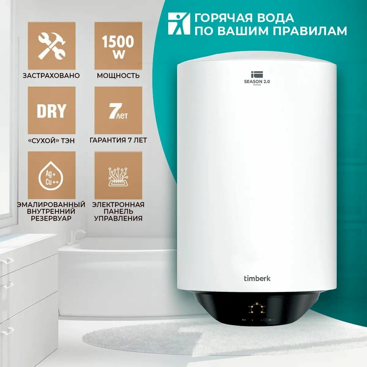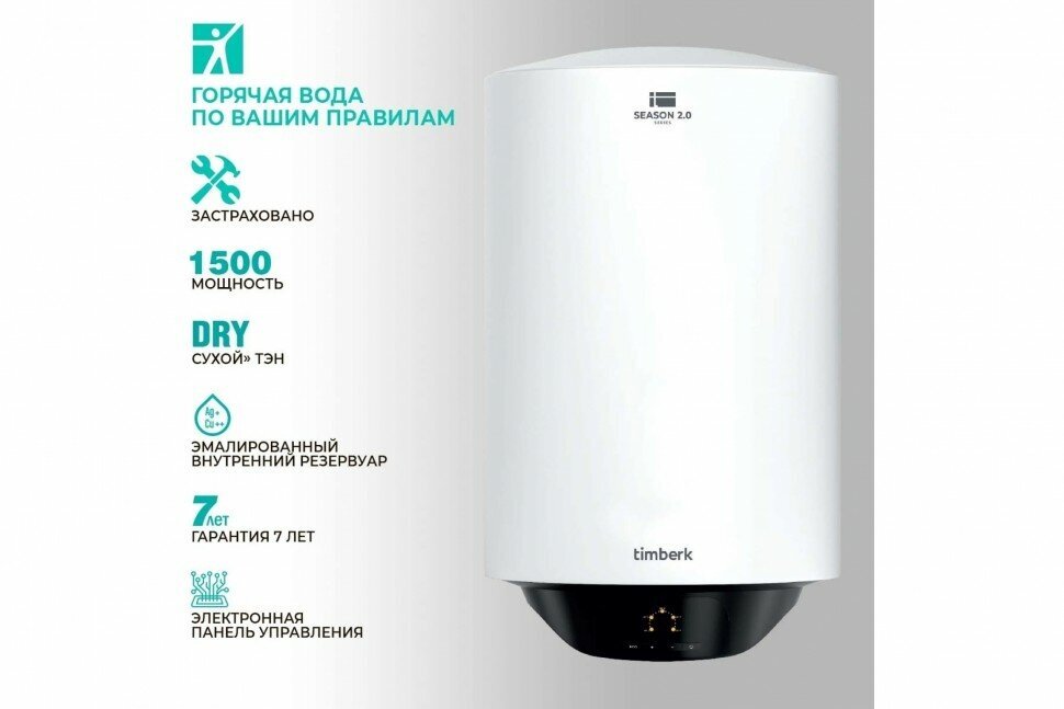 Водонагреватель Timberk Season 2.0 SWH RE19 30 V, накопительный, 1.5кВт, 30л, белый
