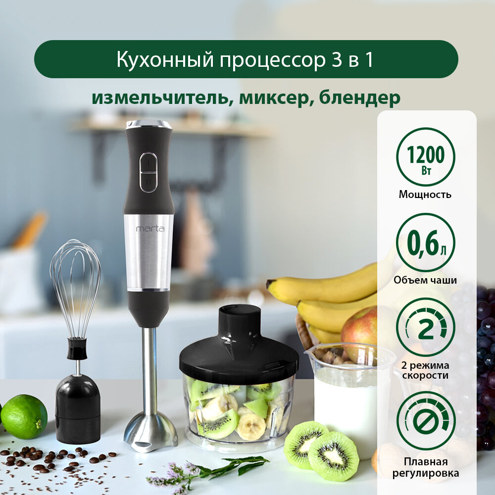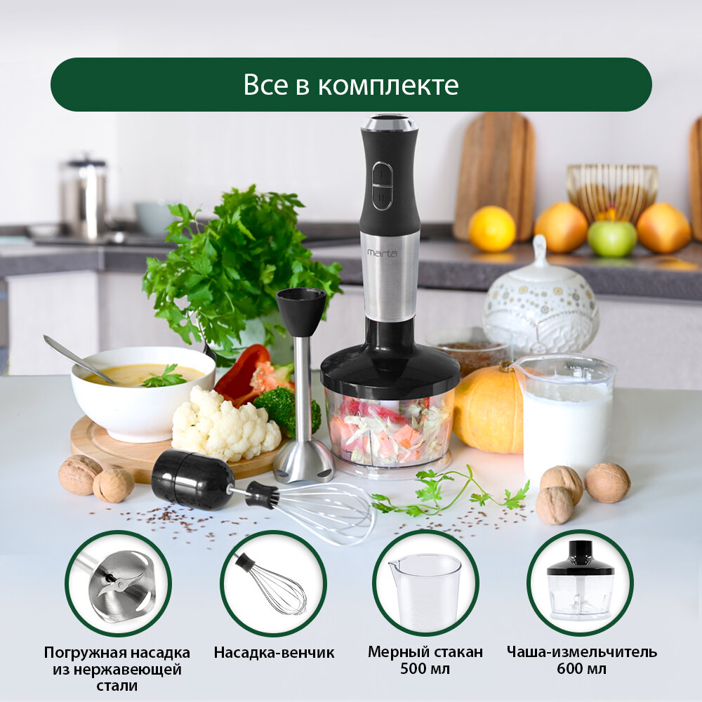 СохранитьБлендер погружной Марта MT-1566 чоппер корпус металлический 2 скорости 1200Вт черный жемчуг / бытовая техника для кухни / измельчитель электрический интересное: