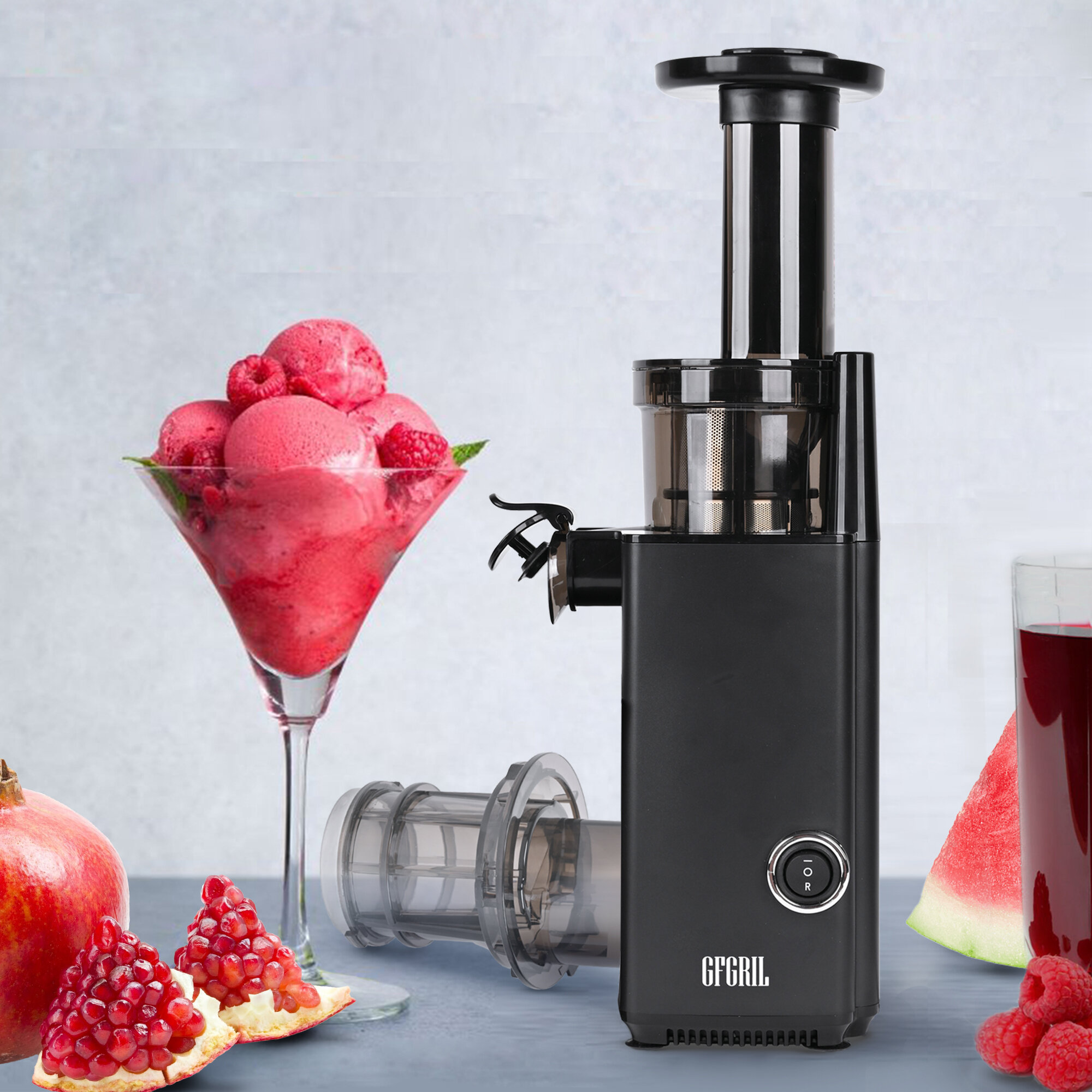 Купить GFGRIL Соковыжималка шнековая 2 в 1 GF-J10 с насадкой для приготовления сорбета, суперкомпактная соковыжималка электрическая для цитрусовых