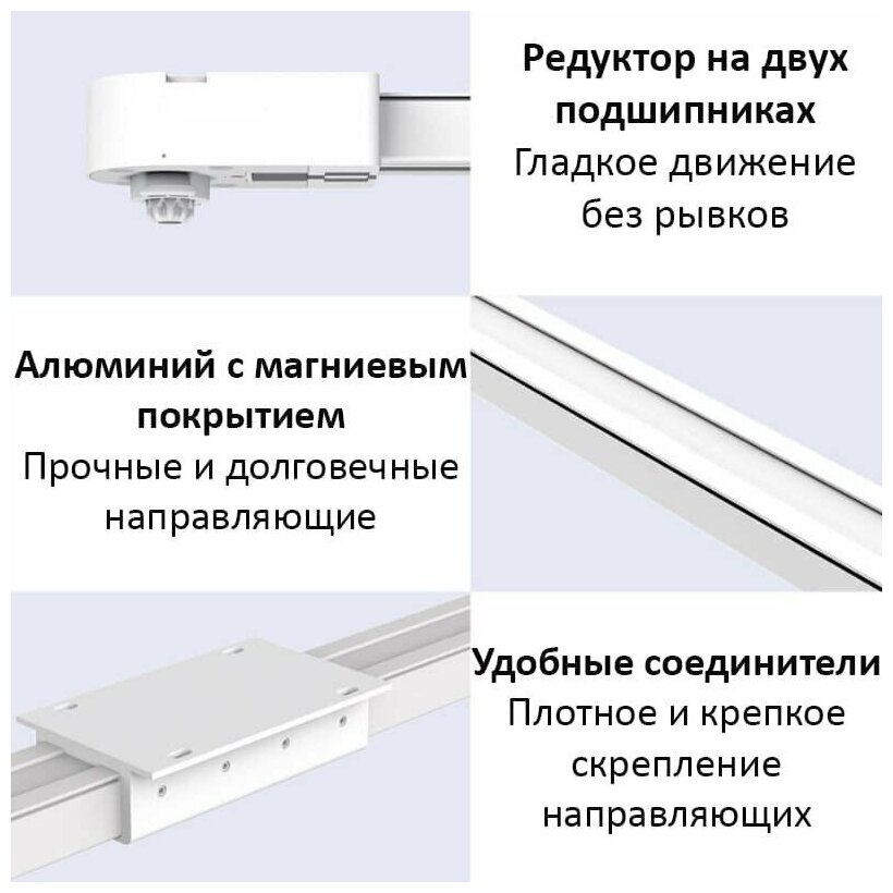 | Дополнительная информация | минимальный размер карниза в сборе 20 см, максимальный - 3,2 метра; для управления голосом доступно подключение к голосовым ассистентам Алиса и Google Assistant |
