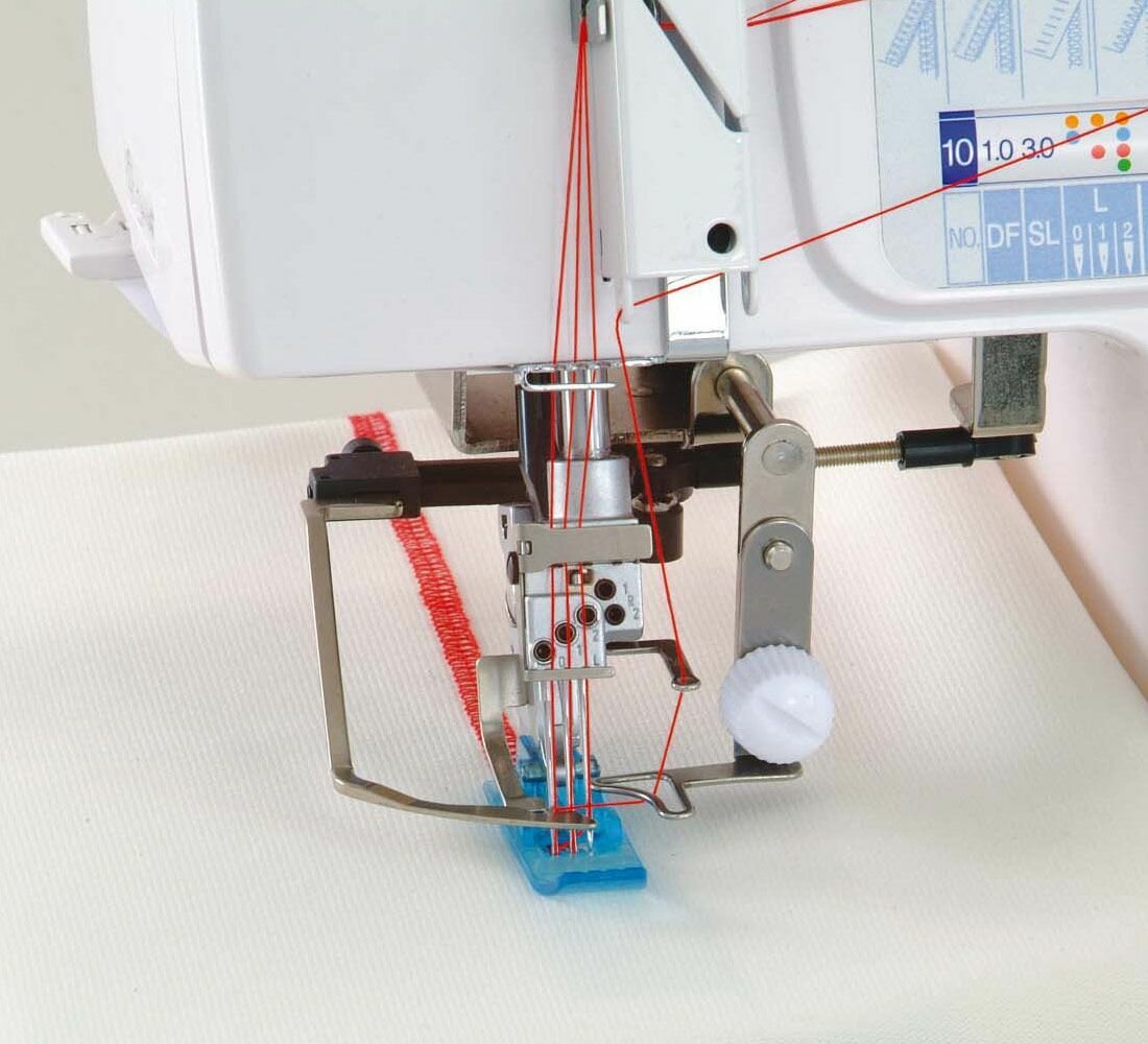 | Дополнительные функции | отключение ножа, регулировка ширины обреза ткани, заправщик нижнего петлителя, стабилизатор силы прокола, дифференциальная подача, автоматическая заправка иглы, регулировка прижима ткани |