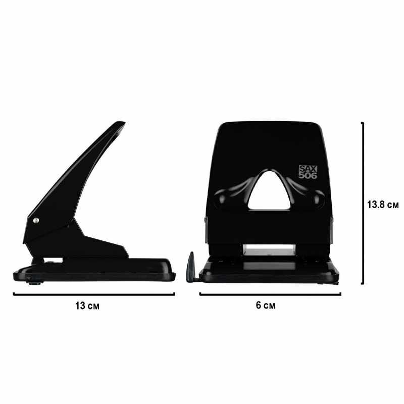 Дырокол SAX 506 до 40л, металлический, с линейкой (черный)