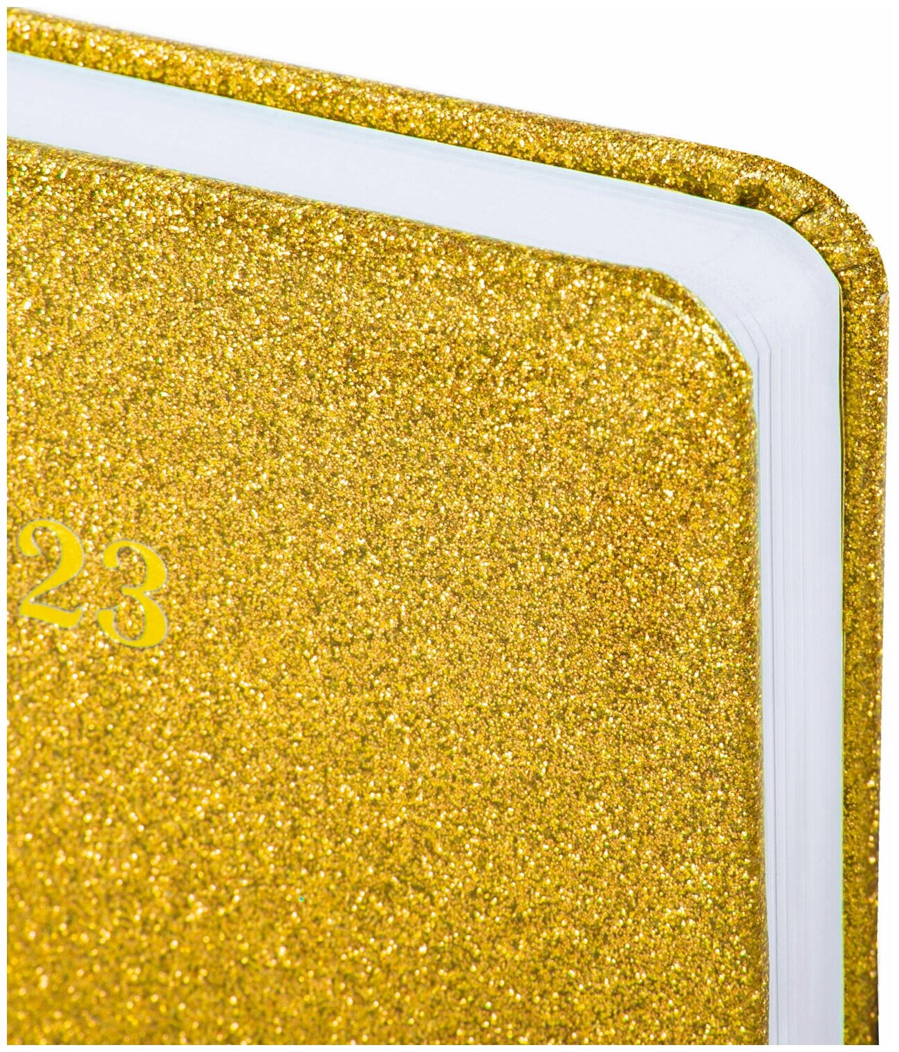 Ежедневник датированный 2023 А5 138×213 мм BRAUBERG «Sparkle», под кожу, блестки, золотистый, 114110